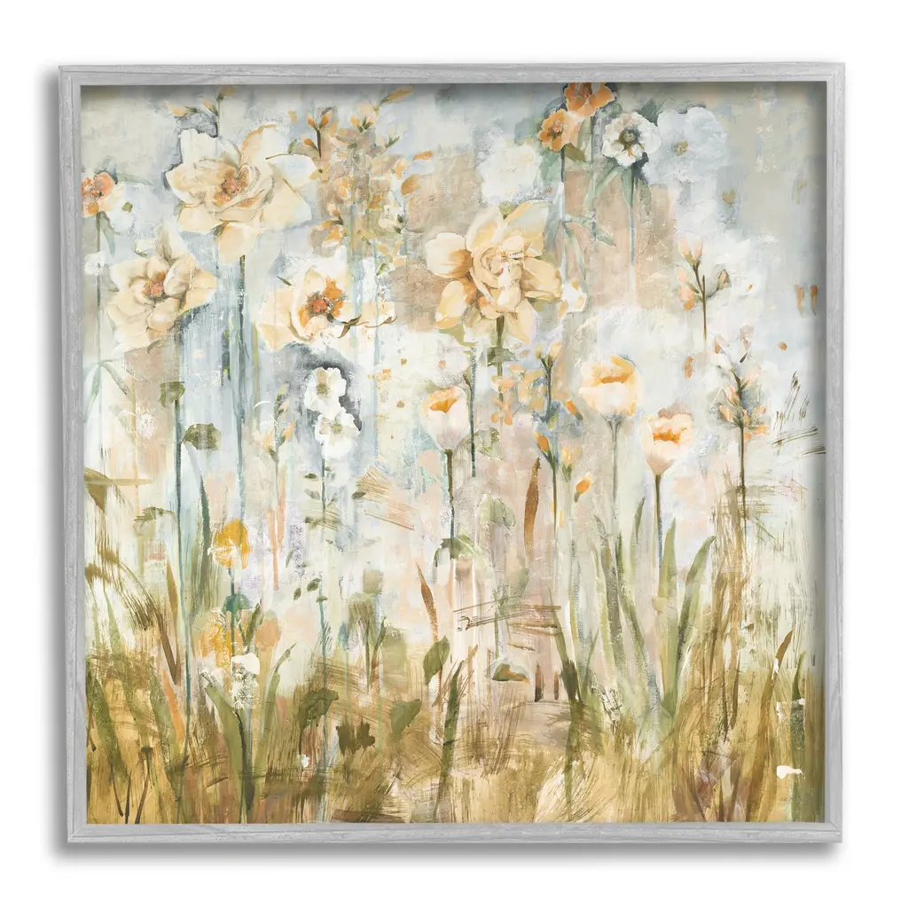 Stupell Abstract Wildflowers Blooming Framed Floater Canvas Wall Art By Tim O'toole - 16 X 20 - Grey