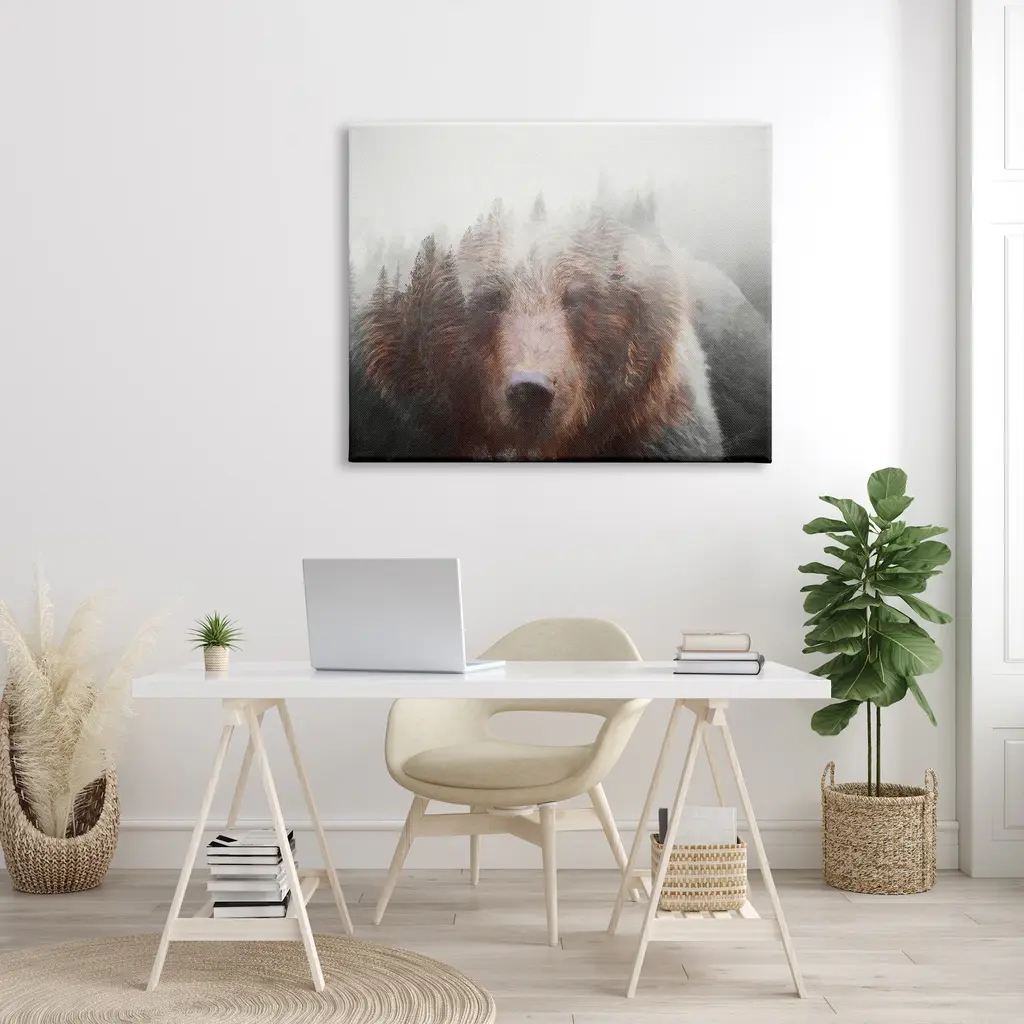 Stupell Abstract Wildlife Brown Bear Foggy Weather Forest Canvas Wall Art - White - 48 X 36