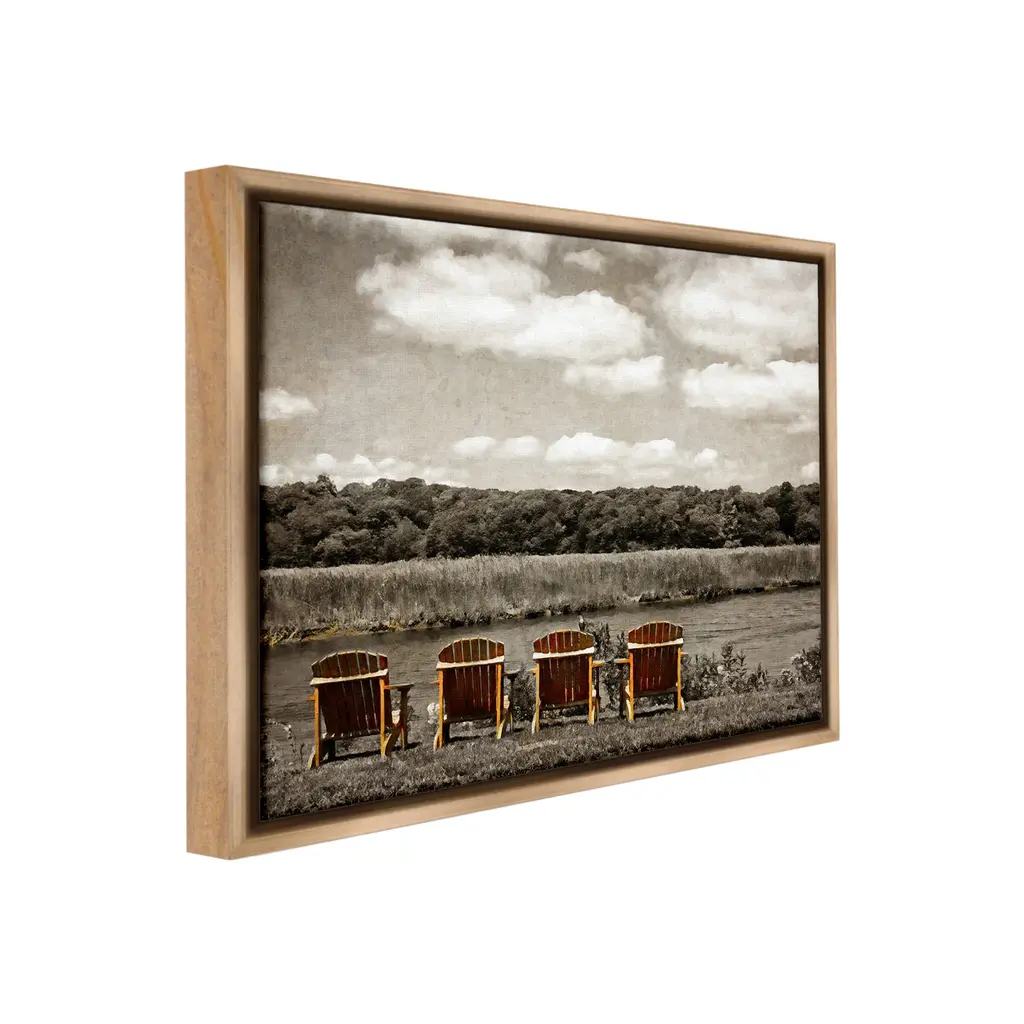 Elevate your home or office to the next level with Stupell Framed Floating Canvas Wall Art. Our premium hand-stretched canvas is mounted securely into a sturdy lightweight frame. The museum-style gap between the wrapped canvas and the box frame gives the illusion of floating artwork. Stupell Wall Art is made in the USA.Features: Dimensions: 21 x 1.7 x 17 Frame, 20 x 1.5 x 16 Canvas ArtFloating Frame Canvas Products are available in sizes 21"x17" and 31"x25". All Floating Frame Canvas Products have a 1.7" Depth.Wall Art is Ready to Hang with Hardware Free Hanging. No Installation required. For Easy Set Up Lean or Layer Artwork on Shelf or Against Wall. Artwork is Permently Fixed into the Frame.Our elevated 1.7" Thick Floating Frame is the perfect complement to our canvas style Wall Art. We use only the highest quality inks in house with industry leading printing solutions. Canvas is hand stretched over a durable wood foundation and then mounted securly into a Modern Box Frame. Made in the USA.Artwork Relates To: Nature, Scenery, Sky, Chair, Weather, Grass, Plant, Landscape, WaterfrontDesign by GraffiTee Studios