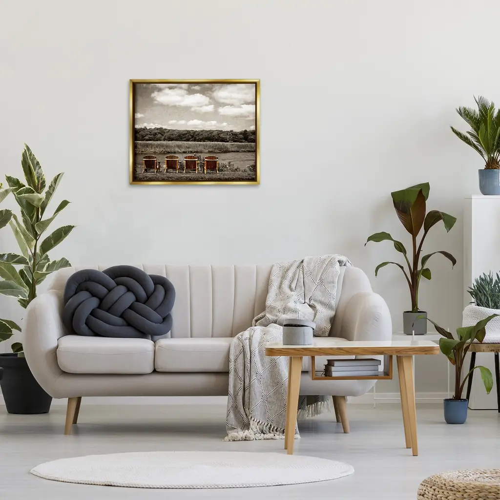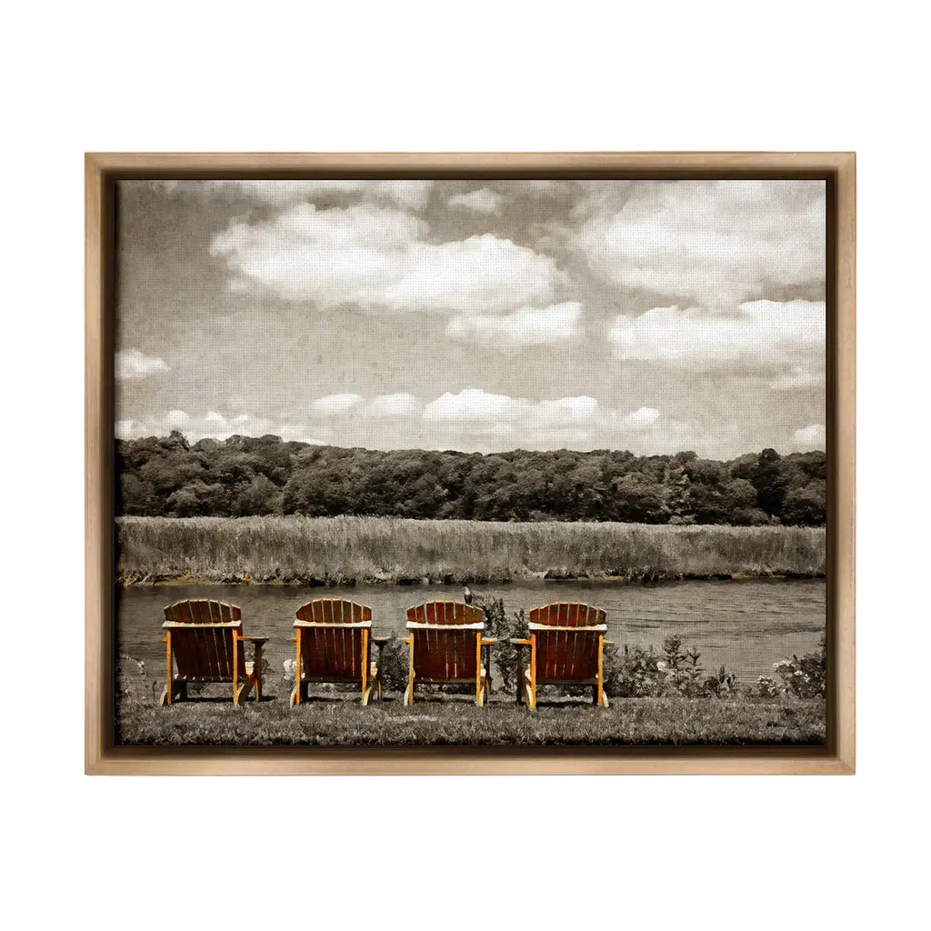Elevate your home or office to the next level with Stupell Framed Floating Canvas Wall Art. Our premium hand-stretched canvas is mounted securely into a sturdy lightweight frame. The museum-style gap between the wrapped canvas and the box frame gives the illusion of floating artwork. Stupell Wall Art is made in the USA.Features: Dimensions: 21 x 1.7 x 17 Frame, 20 x 1.5 x 16 Canvas ArtFloating Frame Canvas Products are available in sizes 21"x17" and 31"x25". All Floating Frame Canvas Products have a 1.7" Depth.Wall Art is Ready to Hang with Hardware Free Hanging. No Installation required. For Easy Set Up Lean or Layer Artwork on Shelf or Against Wall. Artwork is Permently Fixed into the Frame.Our elevated 1.7" Thick Floating Frame is the perfect complement to our canvas style Wall Art. We use only the highest quality inks in house with industry leading printing solutions. Canvas is hand stretched over a durable wood foundation and then mounted securly into a Modern Box Frame. Made in the USA.Artwork Relates To: Nature, Scenery, Sky, Chair, Weather, Grass, Plant, Landscape, WaterfrontDesign by GraffiTee Studios