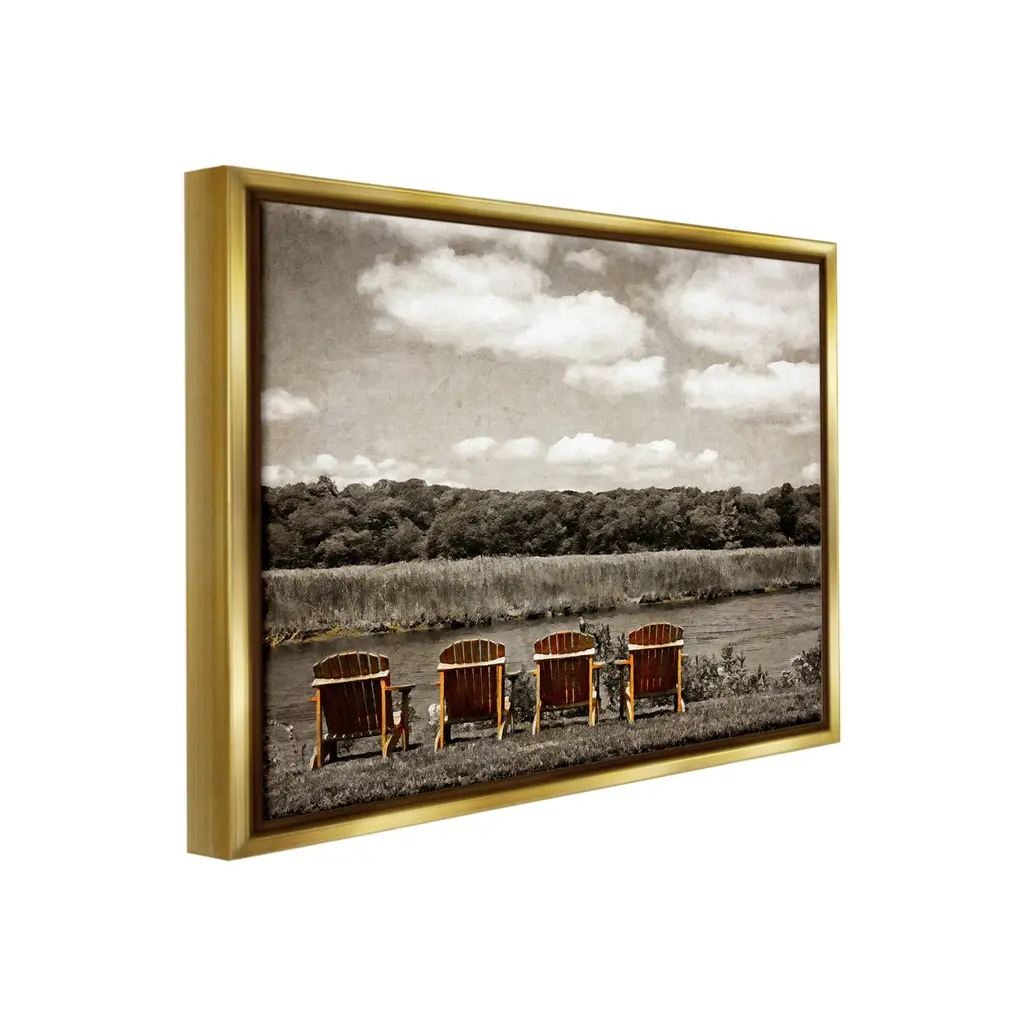 Stupell Adirondacks Lake View Framed Floater Canvas Wall Art Design By Graffitee Studios - 31 X 25 - Gold