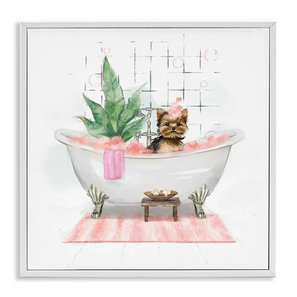 Stupell Adorable French Bulldog In Pink Bubble Bath Framed Wall Art - 24 X 24 - Black