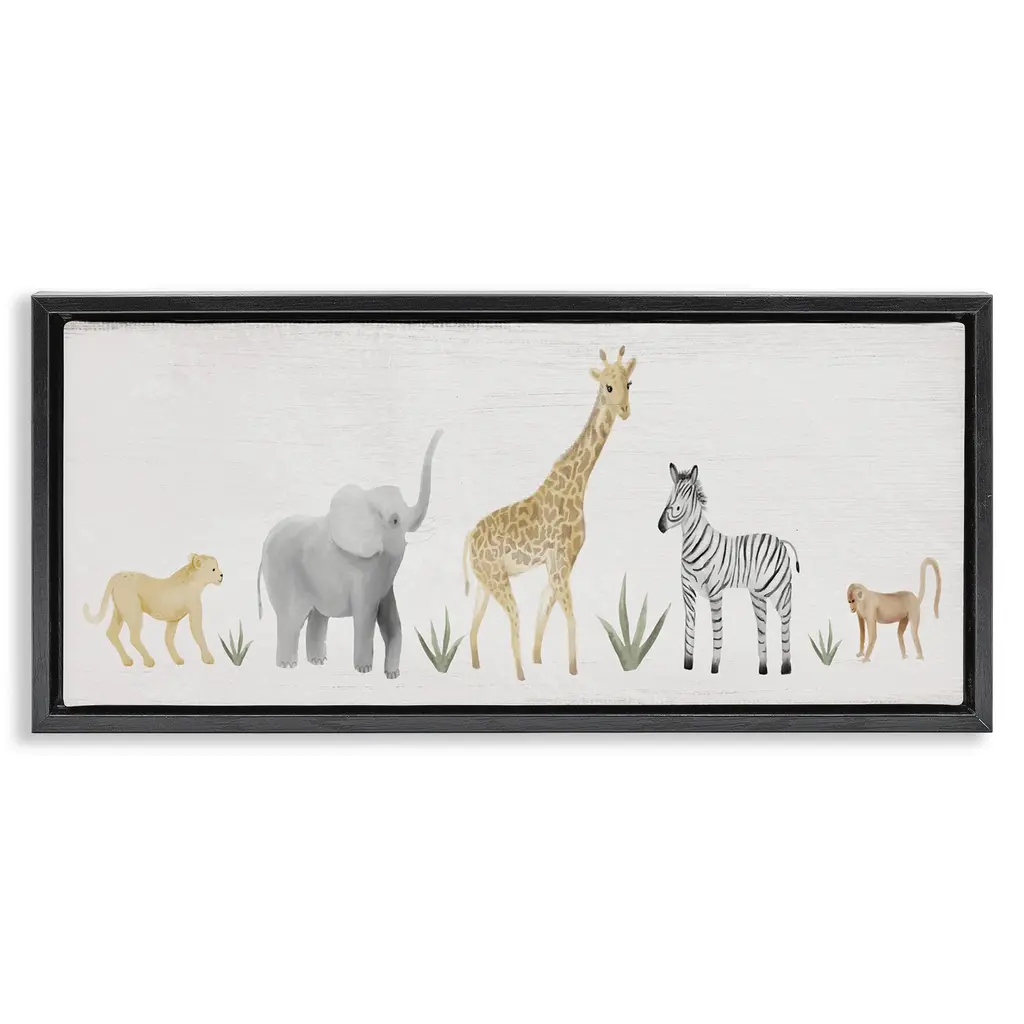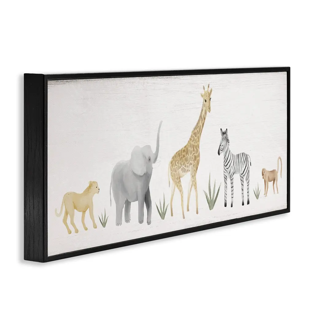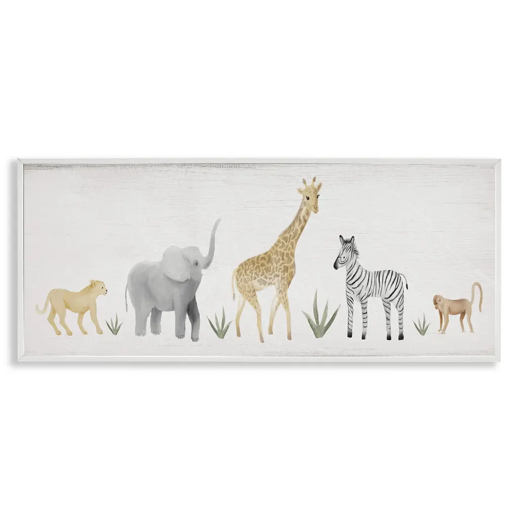 Add dimension to any room with our textured Framed Giclee Artwork. Our framed artwork is securely mounted into a 1.5-inch thick wood grain frame and ready to hang. Frames are available in three alluring styles: black, gray farmhouse and white. In addition, you should check out our oversized options if you want a statement piece. Stupell Wall Art is made in the USA.Features: Dimensions: 24 x 1.5 x 10 FramedFramed Giclee Product Sizes include 24"x10" and 30"x13". All Framed Giclee products have a 1.5" Depth.Wall Art is Ready to Hang with Hardware Free Hanging. No installation required. For Easy Set Up Lean or Layer Artwork on Shelf or Against Wall.Our giclée prints are carefully mounted on a durable MDF backing, and then perfectly finished in a 1.5 inch thick woodgrain frame. Mounted frame colors include black, gray farmhouse and white. Made In USA.Artwork Relates To: Kid's, Zoo animals, Zebra, giraffe, elephant, monkey, AnimalDesign by Daphne Polselli