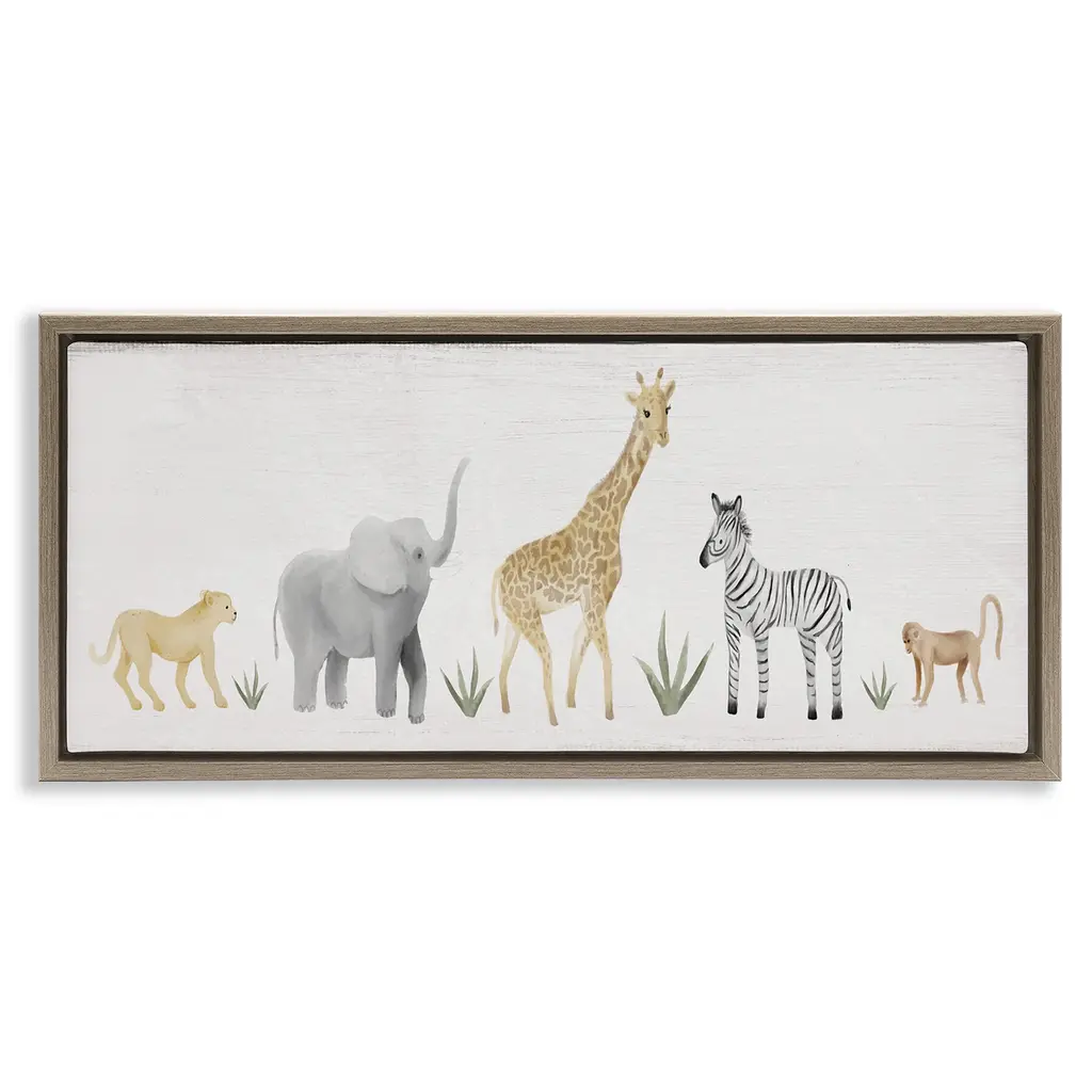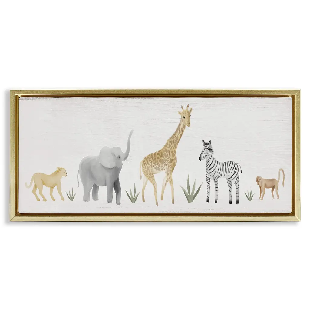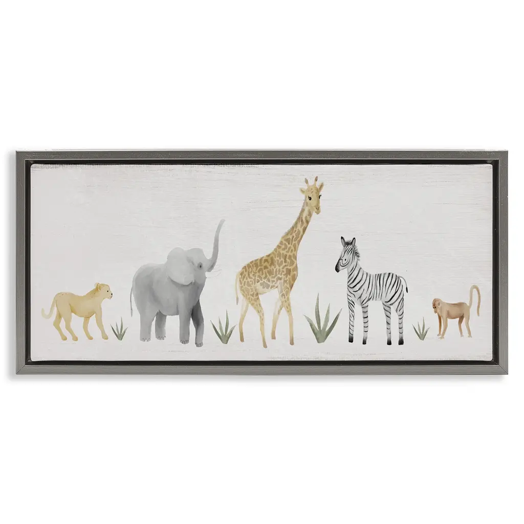 Add dimension to any room with our textured Framed Giclee Artwork. Our framed artwork is securely mounted into a 1.5-inch thick wood grain frame and ready to hang. Frames are available in three alluring styles: black, gray farmhouse and white. In addition, you should check out our oversized options if you want a statement piece. Stupell Wall Art is made in the USA.Features: Dimensions: 24 x 1.5 x 10 FramedFramed Giclee Product Sizes include 24"x10" and 30"x13". All Framed Giclee products have a 1.5" Depth.Wall Art is Ready to Hang with Hardware Free Hanging. No installation required. For Easy Set Up Lean or Layer Artwork on Shelf or Against Wall.Our giclée prints are carefully mounted on a durable MDF backing, and then perfectly finished in a 1.5 inch thick woodgrain frame. Mounted frame colors include black, gray farmhouse and white. Made In USA.Artwork Relates To: Kid's, Zoo animals, Zebra, giraffe, elephant, monkey, AnimalDesign by Daphne Polselli