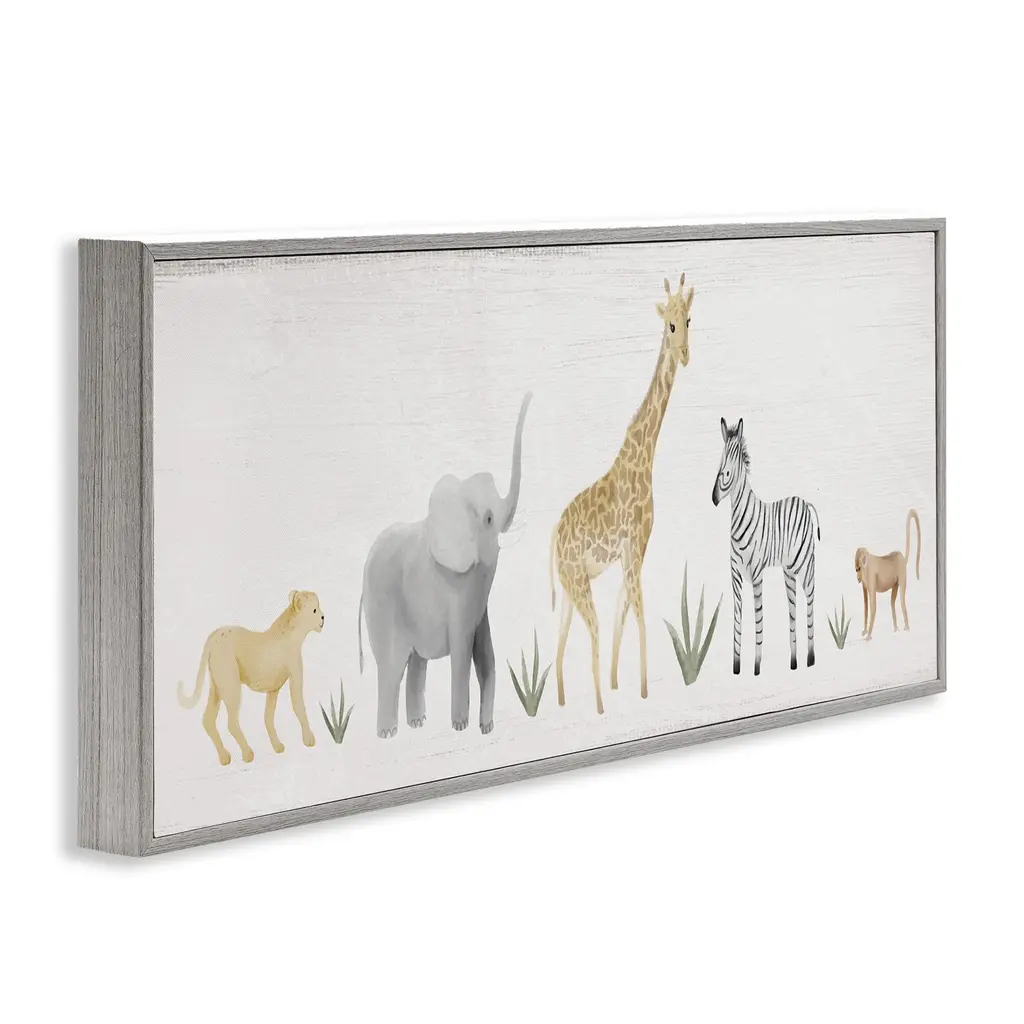 Add dimension to any room with our textured Framed Giclee Artwork. Our framed artwork is securely mounted into a 1.5-inch thick wood grain frame and ready to hang. Frames are available in three alluring styles: black, gray farmhouse and white. In addition, you should check out our oversized options if you want a statement piece. Stupell Wall Art is made in the USA.Features: Dimensions: 24 x 1.5 x 10 FramedFramed Giclee Product Sizes include 24"x10" and 30"x13". All Framed Giclee products have a 1.5" Depth.Wall Art is Ready to Hang with Hardware Free Hanging. No installation required. For Easy Set Up Lean or Layer Artwork on Shelf or Against Wall.Our giclée prints are carefully mounted on a durable MDF backing, and then perfectly finished in a 1.5 inch thick woodgrain frame. Mounted frame colors include black, gray farmhouse and white. Made In USA.Artwork Relates To: Kid's, Zoo animals, Zebra, giraffe, elephant, monkey, AnimalDesign by Daphne Polselli