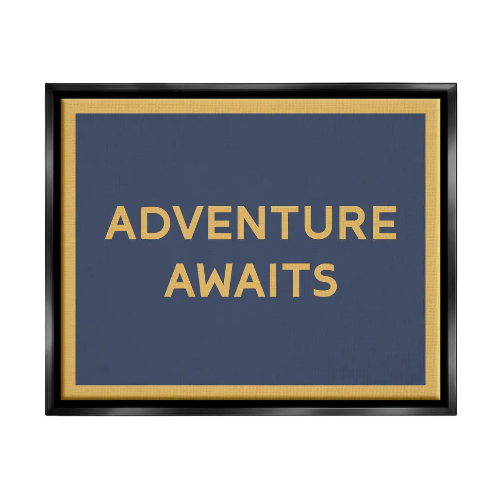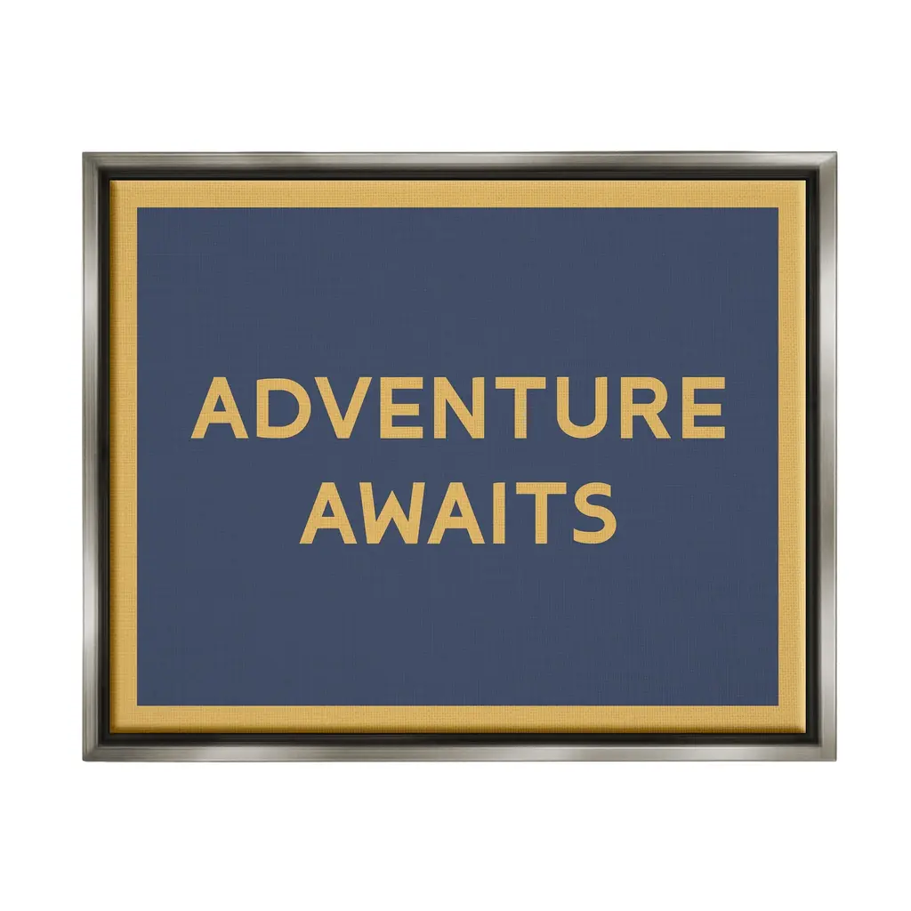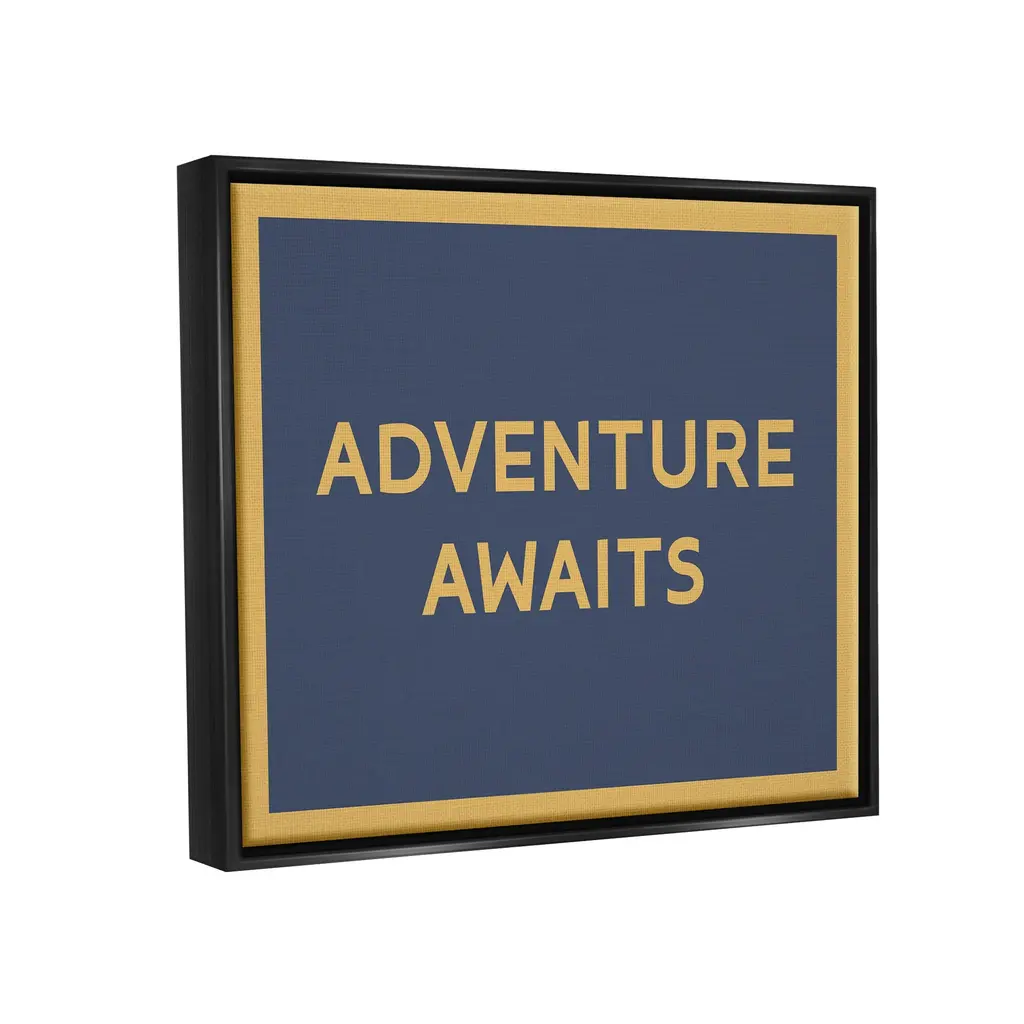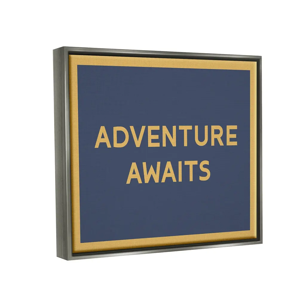 Elevate your home or office to the next level with Stupell Framed Floating Canvas Wall Art. Our premium hand-stretched canvas is mounted securely into a sturdy lightweight frame. The museum-style gap between the wrapped canvas and the box frame gives the illusion of floating artwork. Stupell Wall Art is made in the USA.Features: Dimensions: 21 x 1.7 x 17 Frame, 20 x 1.5 x 16 Canvas ArtFloating Frame Sizes Include Standard: 21 x 1.7 x 17 Oversized: 31 x 1.7 x 25Wall Art is Ready to Hang - No Installation or Hardware Needed. For Easy Set Up Lean or Layer Artwork on Shelf or Against Wall.Our elevated 1.7" Thick Floating Frame is the perfect complement to our canvas style Wall Art. We use only the highest quality inks in house with industry leading printing solutions. Canvas is hand stretched over a durable wood foundation and then mounted securly into a Modern Box Frame. Made in the USA.Artwork Relates To: Phrase, Motivational, Uplifting, Adventure AwaitsDesign by Lil' Rue