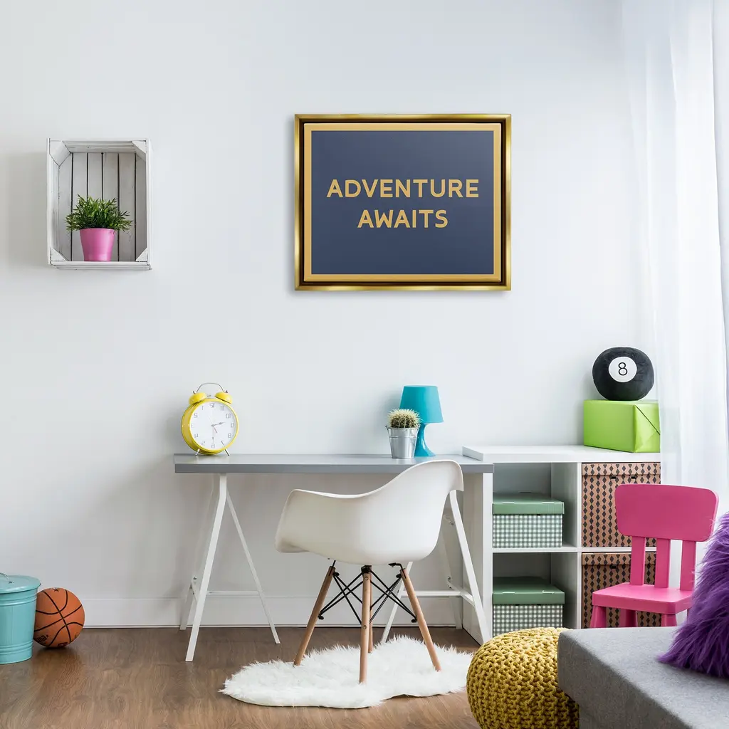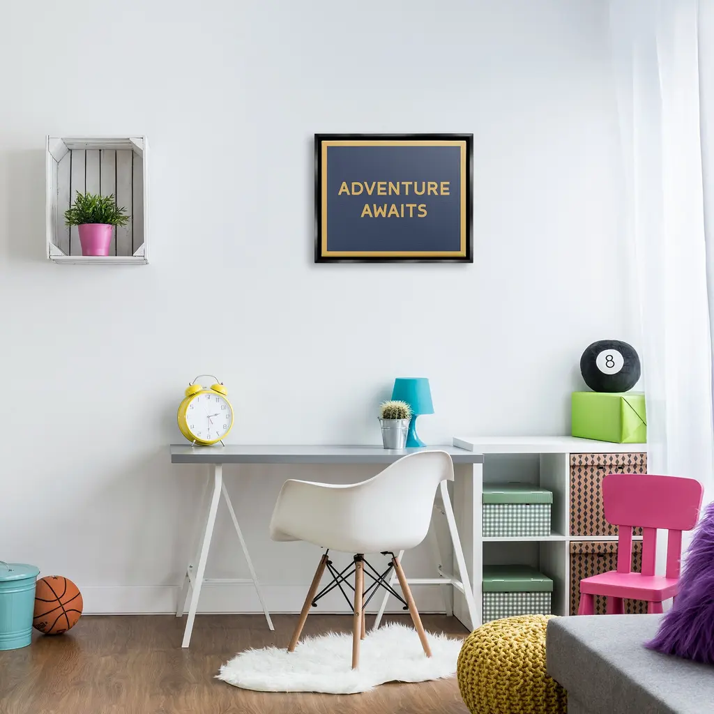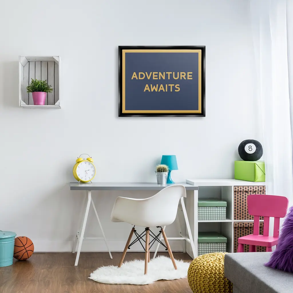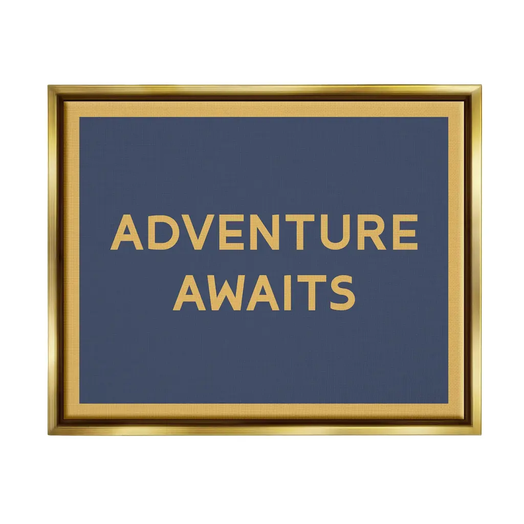 Elevate your home or office to the next level with Stupell Framed Floating Canvas Wall Art. Our premium hand-stretched canvas is mounted securely into a sturdy lightweight frame. The museum-style gap between the wrapped canvas and the box frame gives the illusion of floating artwork. Stupell Wall Art is made in the USA.Features: Dimensions: 21 x 1.7 x 17 Frame, 20 x 1.5 x 16 Canvas ArtFloating Frame Sizes Include Standard: 21 x 1.7 x 17 Oversized: 31 x 1.7 x 25Wall Art is Ready to Hang - No Installation or Hardware Needed. For Easy Set Up Lean or Layer Artwork on Shelf or Against Wall.Our elevated 1.7" Thick Floating Frame is the perfect complement to our canvas style Wall Art. We use only the highest quality inks in house with industry leading printing solutions. Canvas is hand stretched over a durable wood foundation and then mounted securly into a Modern Box Frame. Made in the USA.Artwork Relates To: Phrase, Motivational, Uplifting, Adventure AwaitsDesign by Lil' Rue