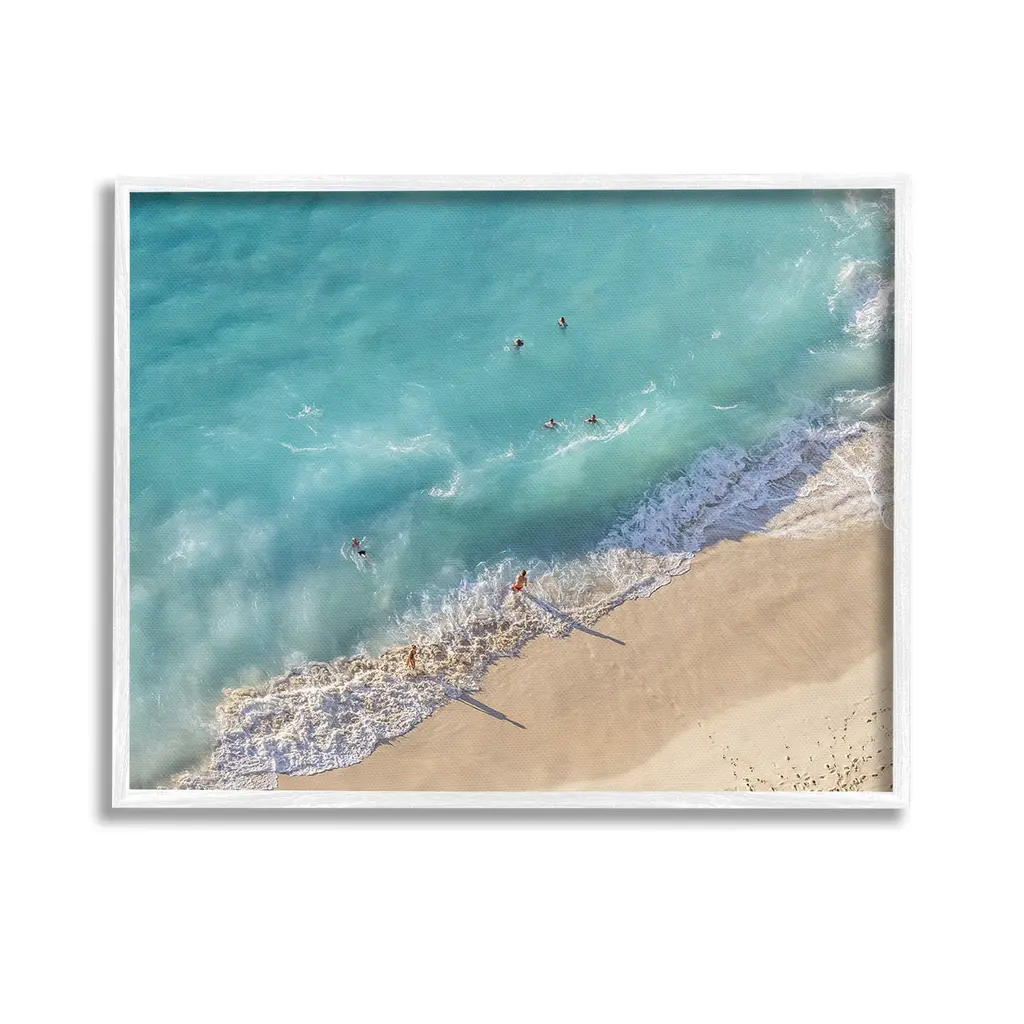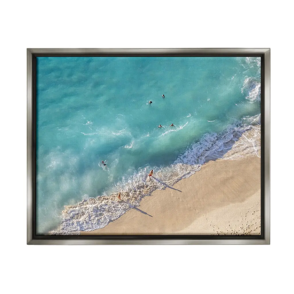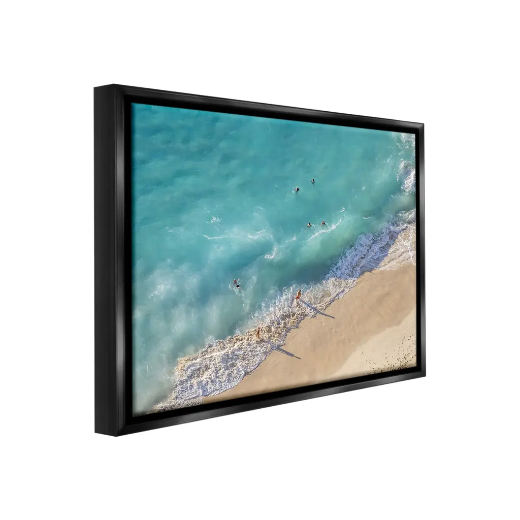 Elevate your home or office to the next level with Stupell Framed Floating Canvas Wall Art. Our premium hand-stretched canvas is mounted securely into a sturdy lightweight frame. The museum-style gap between the wrapped canvas and the box frame gives the illusion of floating artwork. Stupell Wall Art is made in the USA.Features: Dimensions: 21 x 1.7 x 17 Frame, 20 x 1.5 x 16 Canvas ArtFloating Frame Canvas Products are available in sizes 21"x17" and 31"x25". All Floating Frame Canvas Products have a 1.7" Depth.Wall Art is Ready to Hang with Hardware Free Hanging. No Installation required. For Easy Set Up Lean or Layer Artwork on Shelf or Against Wall. Artwork is Permently Fixed into the Frame.Our elevated 1.7" Thick Floating Frame is the perfect complement to our canvas style Wall Art. We use only the highest quality inks in house with industry leading printing solutions. Canvas is hand stretched over a durable wood foundation and then mounted securly into a Modern Box Frame. Made in the USA.Artwork Relates To: Nature, Sea, Water, Coast, Shoreline, Aerial View, Person, Beach, Tropical, SummerDesign by Richard Silver