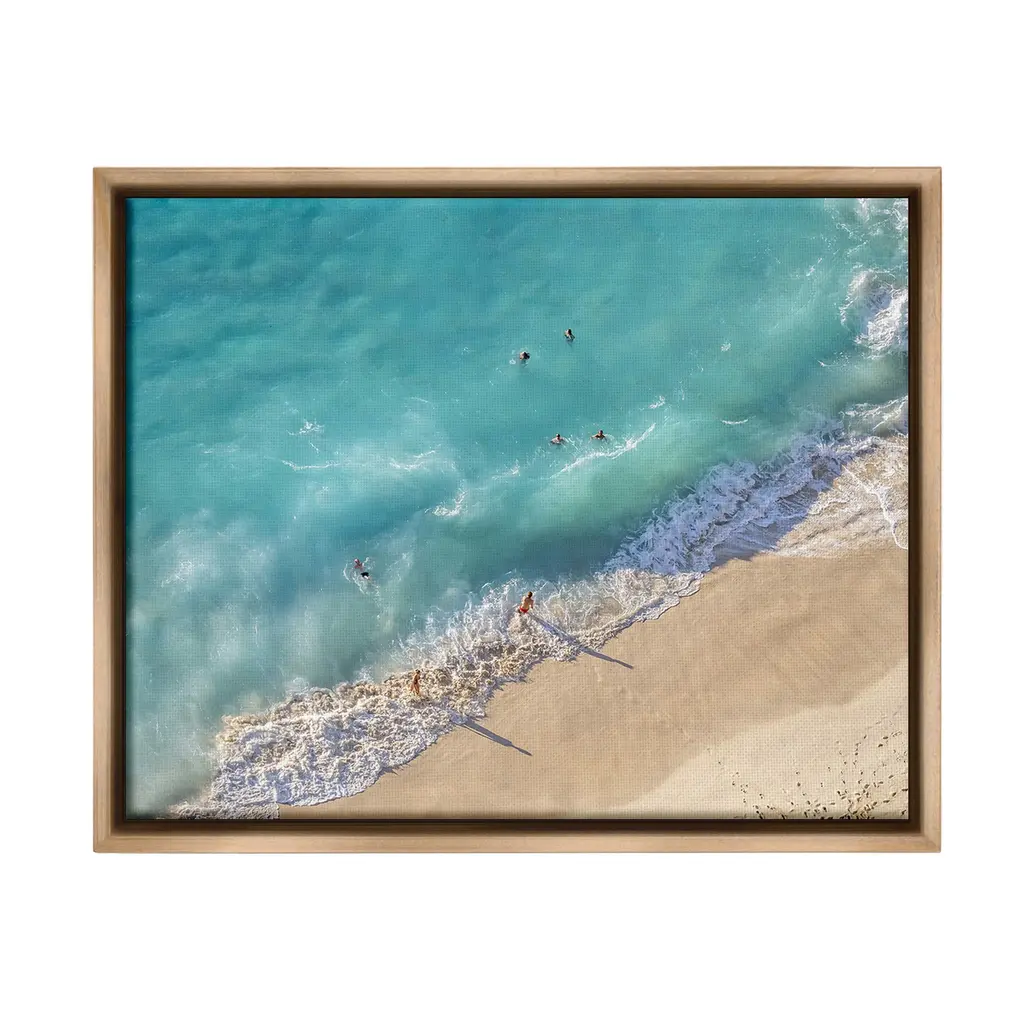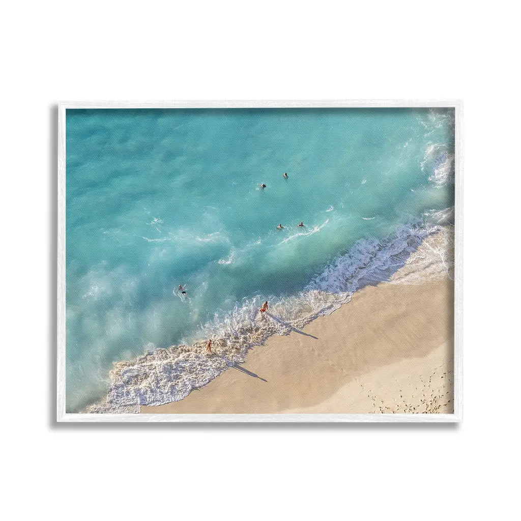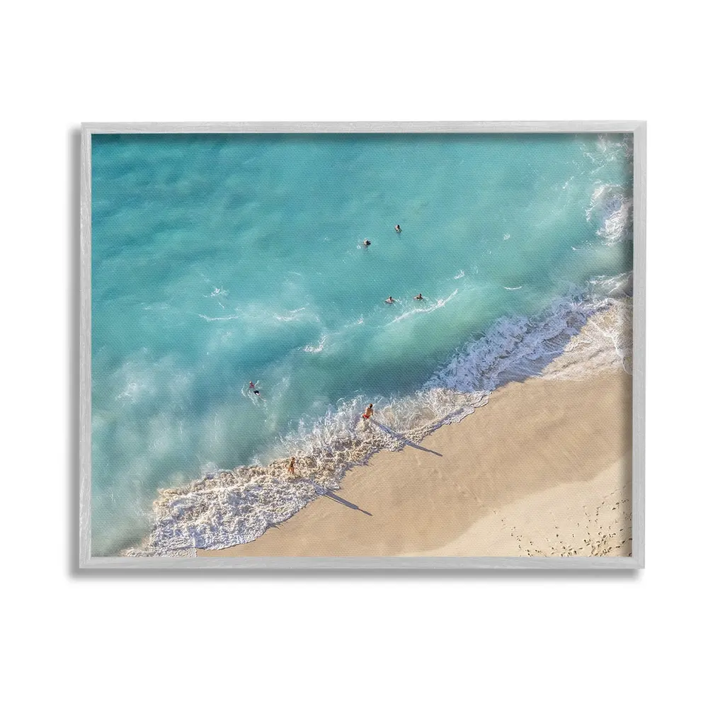 Elevate your home or office to the next level with Stupell Framed Floating Canvas Wall Art. Our premium hand-stretched canvas is mounted securely into a sturdy lightweight frame. The museum-style gap between the wrapped canvas and the box frame gives the illusion of floating artwork. Stupell Wall Art is made in the USA.Features: Dimensions: 21 x 1.7 x 17 Frame, 20 x 1.5 x 16 Canvas ArtFloating Frame Canvas Products are available in sizes 21"x17" and 31"x25". All Floating Frame Canvas Products have a 1.7" Depth.Wall Art is Ready to Hang with Hardware Free Hanging. No Installation required. For Easy Set Up Lean or Layer Artwork on Shelf or Against Wall. Artwork is Permently Fixed into the Frame.Our elevated 1.7" Thick Floating Frame is the perfect complement to our canvas style Wall Art. We use only the highest quality inks in house with industry leading printing solutions. Canvas is hand stretched over a durable wood foundation and then mounted securly into a Modern Box Frame. Made in the USA.Artwork Relates To: Nature, Sea, Water, Coast, Shoreline, Aerial View, Person, Beach, Tropical, SummerDesign by Richard Silver
