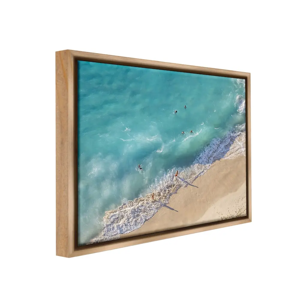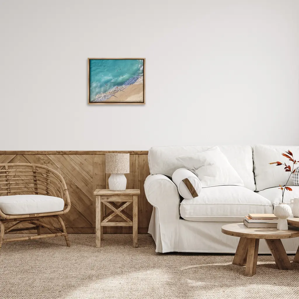 Elevate your home or office to the next level with Stupell Framed Floating Canvas Wall Art. Our premium hand-stretched canvas is mounted securely into a sturdy lightweight frame. The museum-style gap between the wrapped canvas and the box frame gives the illusion of floating artwork. Stupell Wall Art is made in the USA.Features: Dimensions: 21 x 1.7 x 17 Frame, 20 x 1.5 x 16 Canvas ArtFloating Frame Canvas Products are available in sizes 21"x17" and 31"x25". All Floating Frame Canvas Products have a 1.7" Depth.Wall Art is Ready to Hang with Hardware Free Hanging. No Installation required. For Easy Set Up Lean or Layer Artwork on Shelf or Against Wall. Artwork is Permently Fixed into the Frame.Our elevated 1.7" Thick Floating Frame is the perfect complement to our canvas style Wall Art. We use only the highest quality inks in house with industry leading printing solutions. Canvas is hand stretched over a durable wood foundation and then mounted securly into a Modern Box Frame. Made in the USA.Artwork Relates To: Nature, Sea, Water, Coast, Shoreline, Aerial View, Person, Beach, Tropical, SummerDesign by Richard Silver
