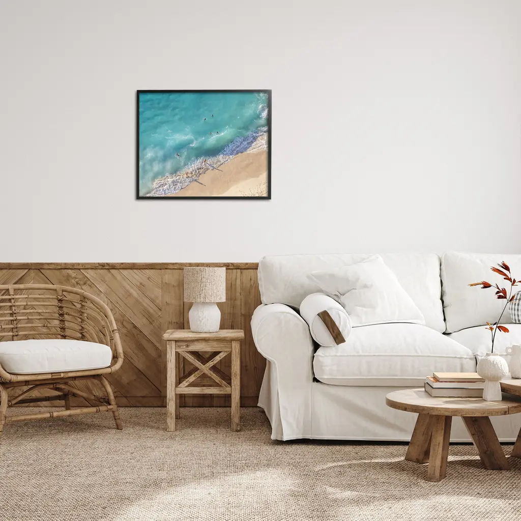 Add dimension to any room with our textured Framed Giclee Artwork. Our framed artwork is securely mounted into a 1.5-inch thick wood grain frame and ready to hang. Frames are available in three alluring styles: black, gray farmhouse and white. In addition, you should check out our oversized options if you want a statement piece. Stupell Wall Art is made in the USA.Features: Dimensions: 14 x 1.5 x 11 FramedFramed Giclee Products are available in the sizes 14"x11", 20"x16" or 30"x24". All Framed Giclee Products have a 1.5" Depth. Wall Art is Ready to Hang with Hardware Free Hanging. No installation required. For Easy Set Up Lean or Layer Artwork on Shelf or Against Wall.Our giclée prints are carefully mounted on a durable MDF backing, and then perfectly finished in a 1.5 inch thick woodgrain frame. Mounted frame colors include black, gray farmhouse and white. Made In USA.Artwork Relates To: Nature, Sea, Water, Coast, Shoreline, Aerial View, Person, Beach, Tropical, SummerDesign by Richard Silver