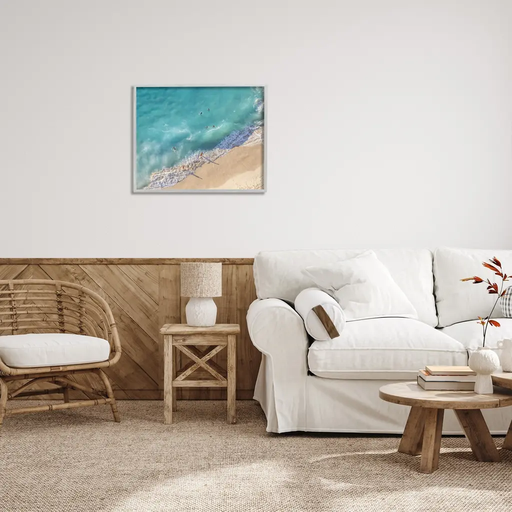 Add dimension to any room with our textured Framed Giclee Artwork. Our framed artwork is securely mounted into a 1.5-inch thick wood grain frame and ready to hang. Frames are available in three alluring styles: black, gray farmhouse and white. In addition, you should check out our oversized options if you want a statement piece. Stupell Wall Art is made in the USA.Features: Dimensions: 14 x 1.5 x 11 FramedFramed Giclee Products are available in the sizes 14"x11", 20"x16" or 30"x24". All Framed Giclee Products have a 1.5" Depth. Wall Art is Ready to Hang with Hardware Free Hanging. No installation required. For Easy Set Up Lean or Layer Artwork on Shelf or Against Wall.Our giclée prints are carefully mounted on a durable MDF backing, and then perfectly finished in a 1.5 inch thick woodgrain frame. Mounted frame colors include black, gray farmhouse and white. Made In USA.Artwork Relates To: Nature, Sea, Water, Coast, Shoreline, Aerial View, Person, Beach, Tropical, SummerDesign by Richard Silver