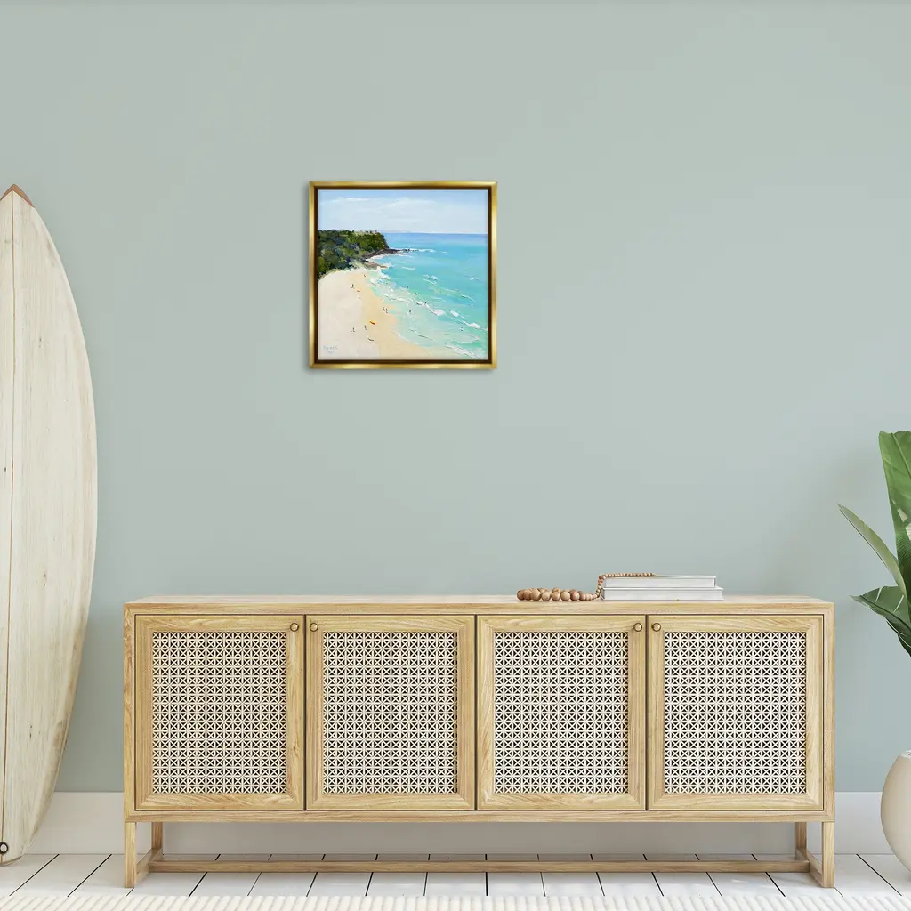 Elevate your home or office to the next level with Stupell Framed Floating Canvas Wall Art. Our premium hand-stretched canvas is mounted securely into a sturdy lightweight frame. The museum-style gap between the wrapped canvas and the box frame gives the illusion of floating artwork. Stupell Wall Art is made in the USA.Features: Dimensions: 18 x 1.7 x 18 Frame, 17 x 1.5 x 17 Canvas ArtFloating Frame Canvas Products are available in sizes 18"x18" and 25"x25". All Floating Frame Canvas Products have a 1.7" Depth.Wall Art is Ready to Hang with Hardware Free Hanging. No Installation required. For Easy Set Up Lean or Layer Artwork on Shelf or Against Wall. Artwork is Permently Fixed into the Frame.Our elevated 1.7" Thick Floating Frame is the perfect complement to our canvas style Wall Art. We use only the highest quality inks in house with industry leading printing solutions. Canvas is hand stretched over a durable wood foundation and then mounted securly into a Modern Box Frame. Made in the USA.Artwork Relates To: Beach, Coast, Sea, Shoreline, Nautical, Shore, People, Beachgoers, LandscapeDesign by Meredith Howse