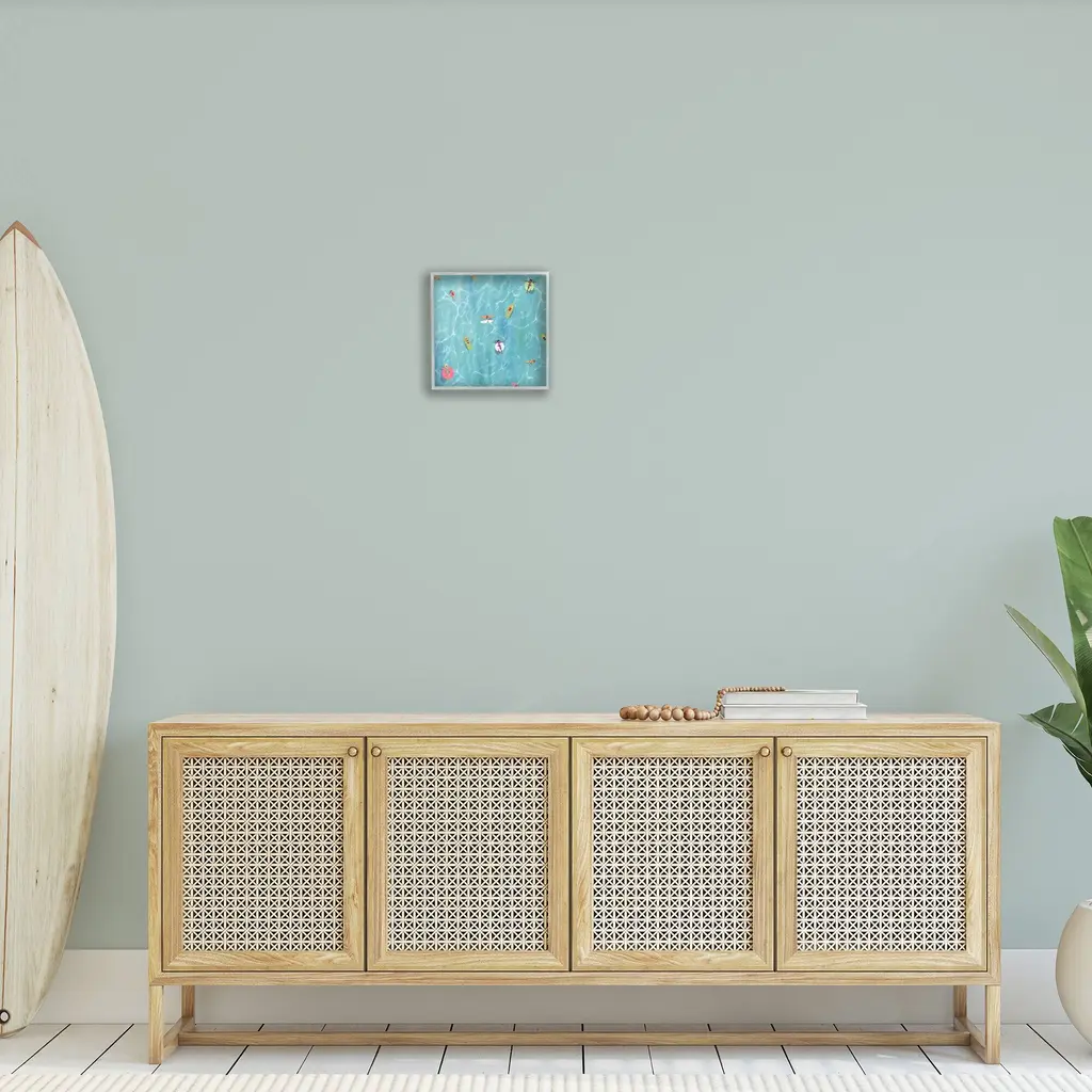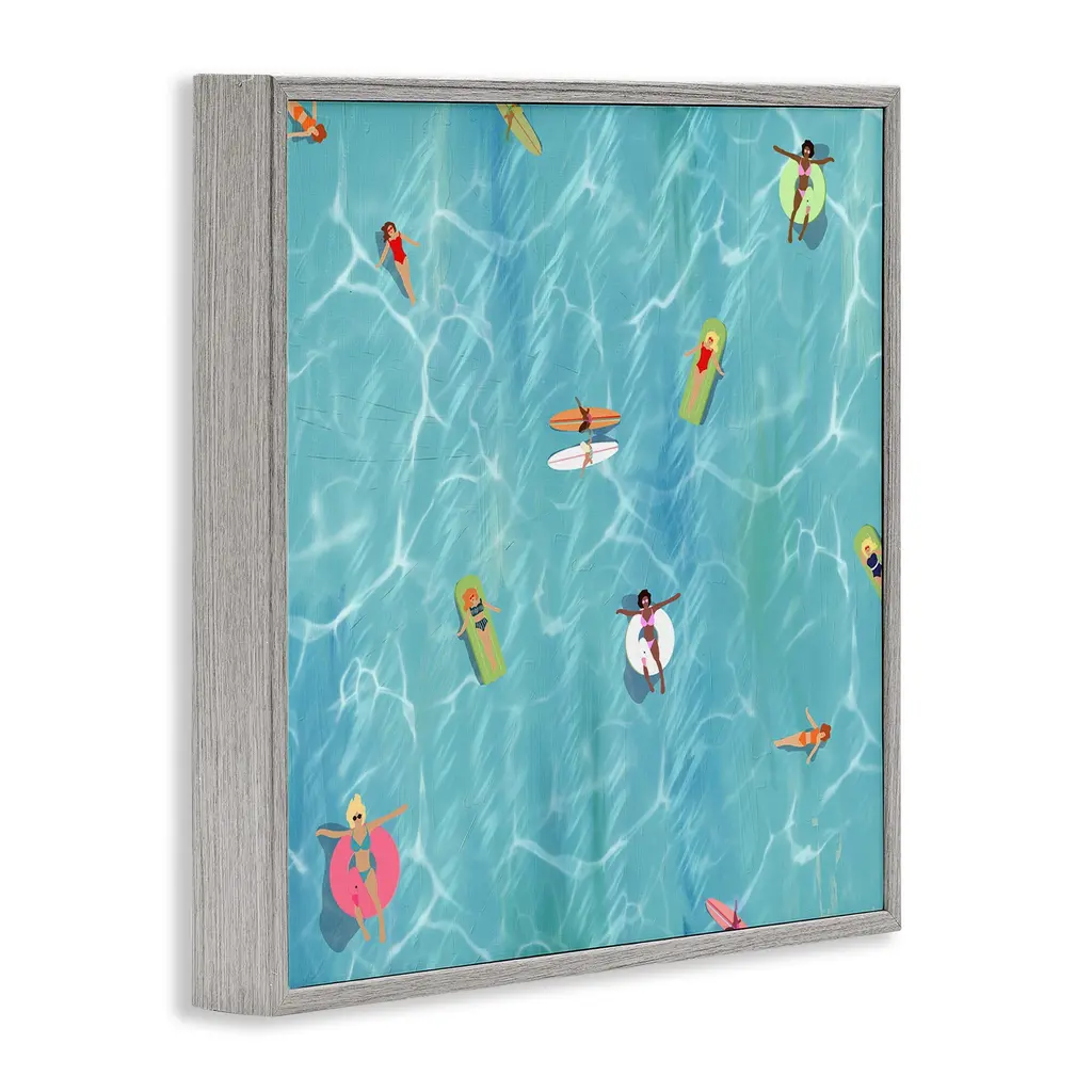 Our Framed Giclee Wall Art adds a touch of class to any space in your home or office. Frames are available in three alluring styles: black, gray farmhouse and white. Our textured artwork will add more depth and dimension to any space. Each piece is mounted with a 1.5 inch thick wood grain frame that is ready to hang! Looking for a statement piece? We have oversized artwork available. Room Type: Living Room, Den, Hallway, Office, Entryway, Study, Dining Room or Bedroom, Guest Room, Studio, Dorm or BoudoirFeatures: Dimensions: 12 x 1.5 x 12 FramedFramed Giclee Sizes Include Standard: 12 x 1.5 x 12 Large: 17 x 1.5 x 17 Oversized: 24 x 1.5 x 24Wall Art is Ready to Hang - No Installation or Hardware Needed. For Easy Set Up Lean or Layer Artwork on Shelf or Against Wall.Our giclée prints are carefully mounted on a durable MDF backing, and then perfectly finished in a 1.5 inch thick woodgrain frame. Mounted frame colors include black, gray farmhouse and white. Made In USA.Artwork Relates To: Leisure Activities, Person, Swimming, Water, Pool, Ocean, Summer, Surfboard, VacationDesign by Ashley Singleton