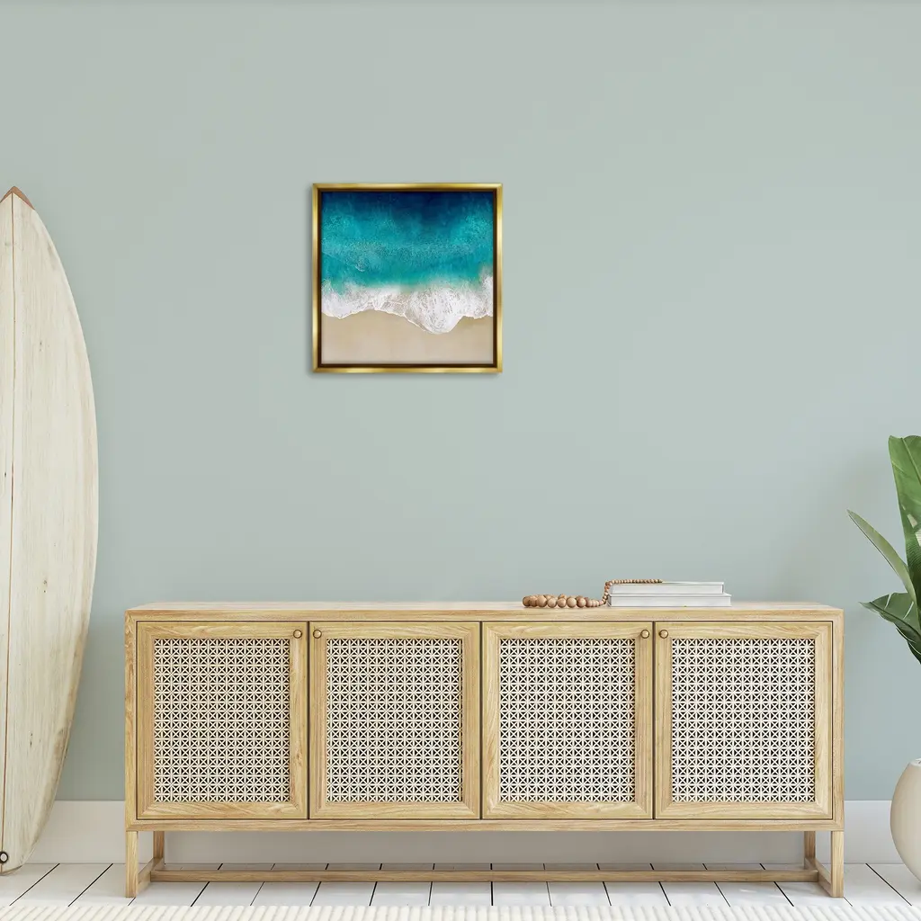 Elevate your home or office to the next level with Stupell Framed Floating Canvas Wall Art. Our premium hand-stretched canvas is mounted securely into a sturdy lightweight frame. The museum-style gap between the wrapped canvas and the box frame gives the illusion of floating artwork. Stupell Wall Art is made in the USA.Features: Dimensions: 18 x 1.7 x 18 Frame, 17 x 1.5 x 17 Canvas ArtFloating Frame Canvas Products are available in sizes 18"x18" and 25"x25". All Floating Frame Canvas Products have a 1.7" Depth.Wall Art is Ready to Hang with Hardware Free Hanging. No Installation required. For Easy Set Up Lean or Layer Artwork on Shelf or Against Wall. Artwork is Permently Fixed into the Frame.Our elevated 1.7" Thick Floating Frame is the perfect complement to our canvas style Wall Art. We use only the highest quality inks in house with industry leading printing solutions. Canvas is hand stretched over a durable wood foundation and then mounted securly into a Modern Box Frame. Made in the USA.Artwork Relates To: Nautical, Beach, Aerial View, Shore, Coast, Tropical, Summer, WavesDesign by Maggie Olsen