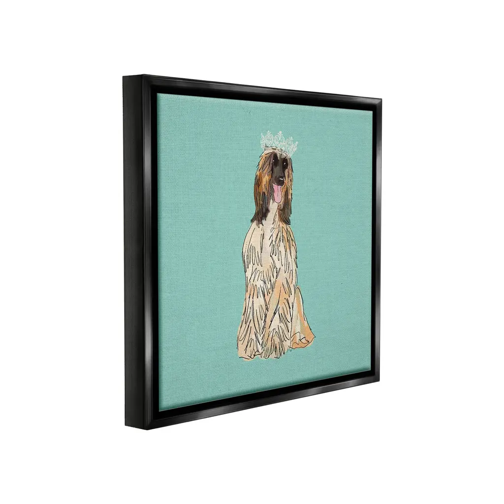 Elevate your home or office to the next level with Stupell Framed Floating Canvas Wall Art. Our premium hand-stretched canvas is mounted securely into a sturdy lightweight frame. The museum-style gap between the wrapped canvas and the box frame gives the illusion of floating artwork. Stupell Wall Art is made in the USA.Features: Dimensions: 18 x 1.7 x 18 Frame, 17 x 1.5 x 17 Canvas ArtFloating Frame Canvas Products are available in sizes 18"x18" and 25"x25". All Floating Frame Canvas Products have a 1.7" Depth.Wall Art is Ready to Hang with Hardware Free Hanging. No Installation required. For Easy Set Up Lean or Layer Artwork on Shelf or Against Wall. Artwork is Permently Fixed into the Frame.Our elevated 1.7" Thick Floating Frame is the perfect complement to our canvas style Wall Art. We use only the highest quality inks in house with industry leading printing solutions. Canvas is hand stretched over a durable wood foundation and then mounted securly into a Modern Box Frame. Made in the USA.Artwork Relates To: Animal, Canine, Dog, Mammal, Pet, Puppy, Tiara, Crown, Princess, Afgan HoundDesign by Amelia Noyes