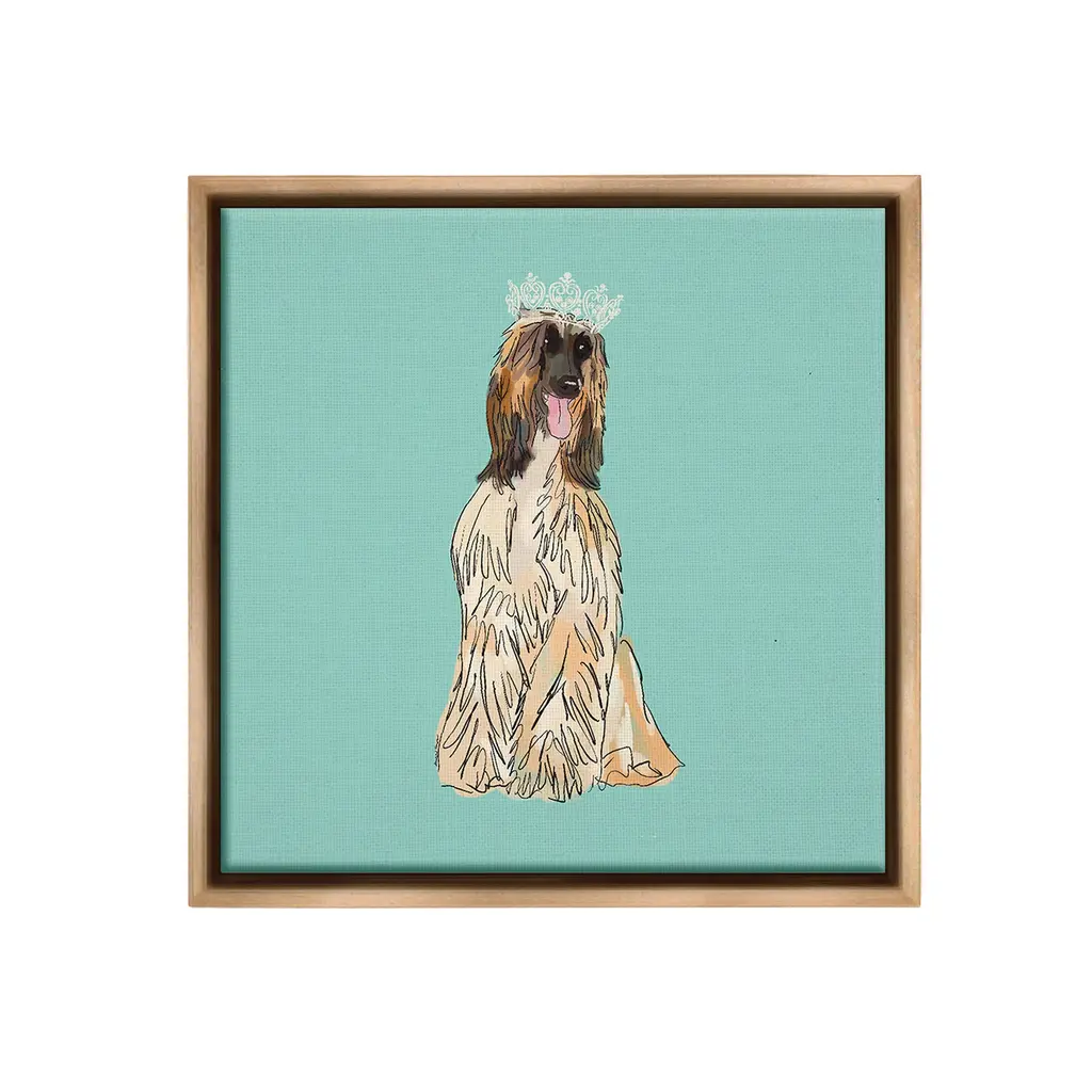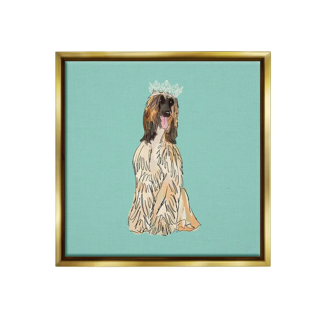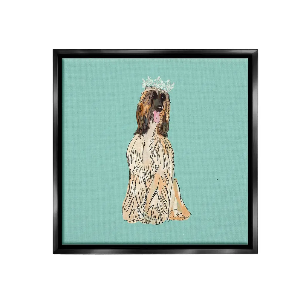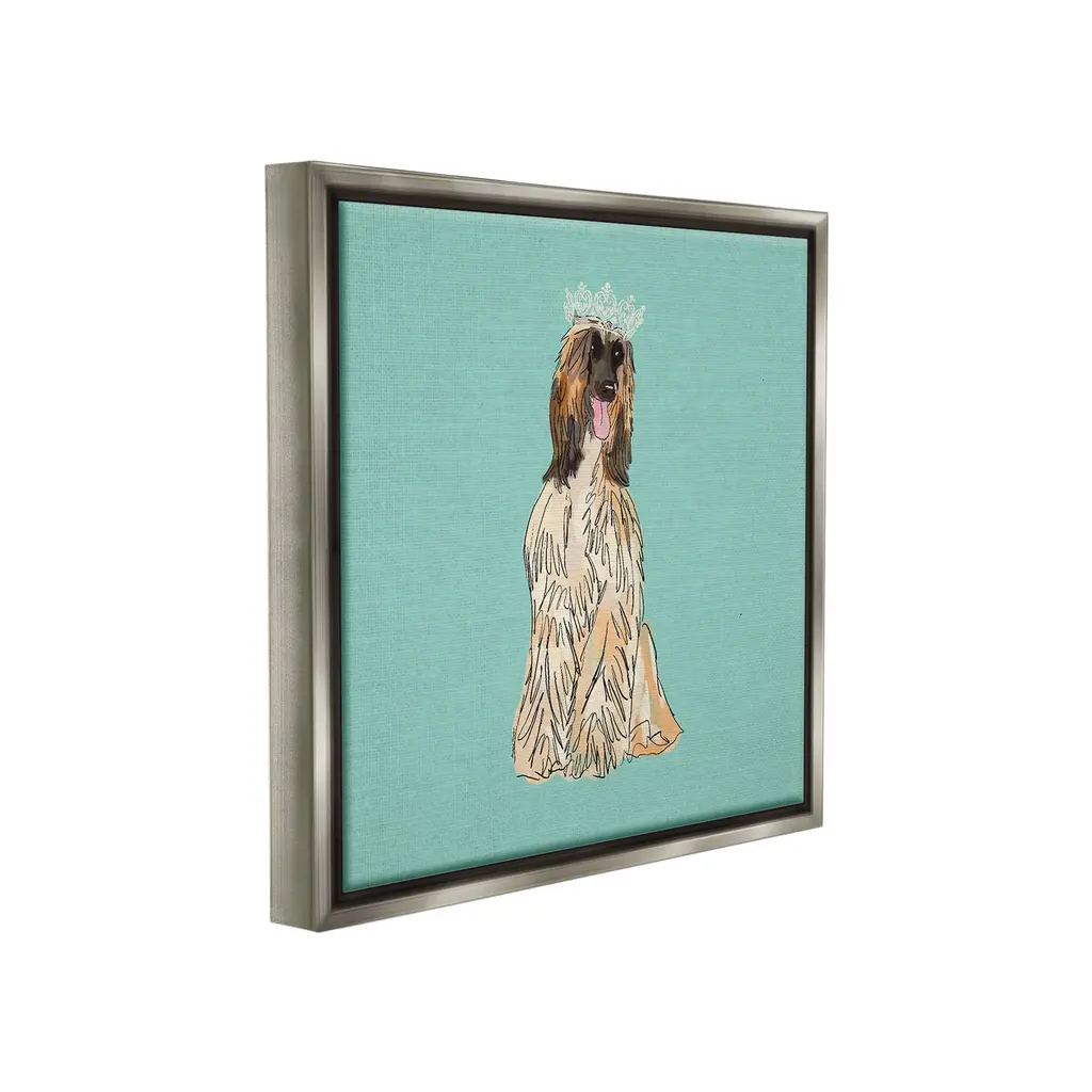 Elevate your home or office to the next level with Stupell Framed Floating Canvas Wall Art. Our premium hand-stretched canvas is mounted securely into a sturdy lightweight frame. The museum-style gap between the wrapped canvas and the box frame gives the illusion of floating artwork. Stupell Wall Art is made in the USA.Features: Dimensions: 18 x 1.7 x 18 Frame, 17 x 1.5 x 17 Canvas ArtFloating Frame Canvas Products are available in sizes 18"x18" and 25"x25". All Floating Frame Canvas Products have a 1.7" Depth.Wall Art is Ready to Hang with Hardware Free Hanging. No Installation required. For Easy Set Up Lean or Layer Artwork on Shelf or Against Wall. Artwork is Permently Fixed into the Frame.Our elevated 1.7" Thick Floating Frame is the perfect complement to our canvas style Wall Art. We use only the highest quality inks in house with industry leading printing solutions. Canvas is hand stretched over a durable wood foundation and then mounted securly into a Modern Box Frame. Made in the USA.Artwork Relates To: Animal, Canine, Dog, Mammal, Pet, Puppy, Tiara, Crown, Princess, Afgan HoundDesign by Amelia Noyes