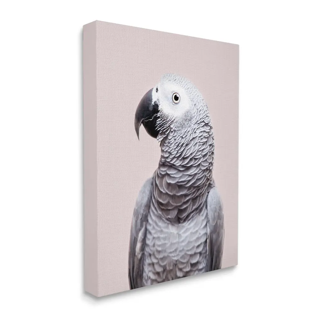 We create our stretched canvas to the highest standards. Using only the highest quality inks and canvas on Mimaki printers, we hand-cut and stretch each piece over a 1.5-inch thick wooden frame for hanging. As a result, the art comes ready to hang on the sturdy ledge with no installation required. Stupell Wall Art is made in the USA.Features: Dimensions: 16 x 1.5 x 20 InchesStretched Canvas Sizes Include Standard: 16 x 1.5 x 20 Large: 20 x 1.5 x 30 X-Large: 30 x 1.5 x 40 Oversized: 36 x 1.5 x 48Wall Art is Ready to Hang with Hardware Free Hanging. No installation required. For Easy Set Up Lean or Layer Artwork on Shelf or Against Wall.Our stretched canvas is created with the highest standards. We use only the highest quality inks and canvas on our in house Mimaki printers, and then hand cut and stretch each piece over a 1.5 inch thick wooden frame for hanging. Made In USA.Artwork Relates To: Animal, Bird, Parrot, African Grey Parrot, BeakDesign by Sisi and Seb