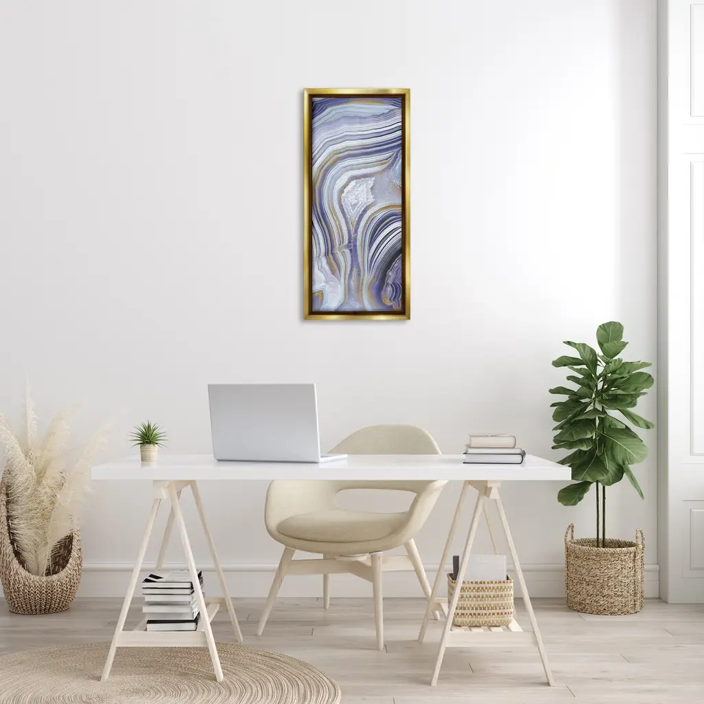 Elevate your home or office to the next level with Stupell Framed Floating Canvas Wall Art. Our premium hand-stretched canvas is mounted securely into a sturdy lightweight frame. The museum-style gap between the wrapped canvas and the box frame gives the illusion of floating artwork. Stupell Wall Art is made in the USA.Features: Dimensions: 11 x 1.7 x 25 Frame, 10 x 1.5 x 24 Canvas ArtFloating Frame Canvas Products are available in sizes 11"x25" and 14"x31". All Floating Frame Canvas Products have a 1.7" Depth.Wall Art is Ready to Hang with Hardware Free Hanging. No Installation required. For Easy Set Up Lean or Layer Artwork on Shelf or Against Wall. Artwork is Permently Fixed into the Frame.Our elevated 1.7" Thick Floating Frame is the perfect complement to our canvas style Wall Art. We use only the highest quality inks in house with industry leading printing solutions. Canvas is hand stretched over a durable wood foundation and then mounted securly into a Modern Box Frame. Made in the USA.Artwork Relates To: Geode, Rock, Nature, Swirl, Abstract, Modern, AgateDesign by Danielle Carson