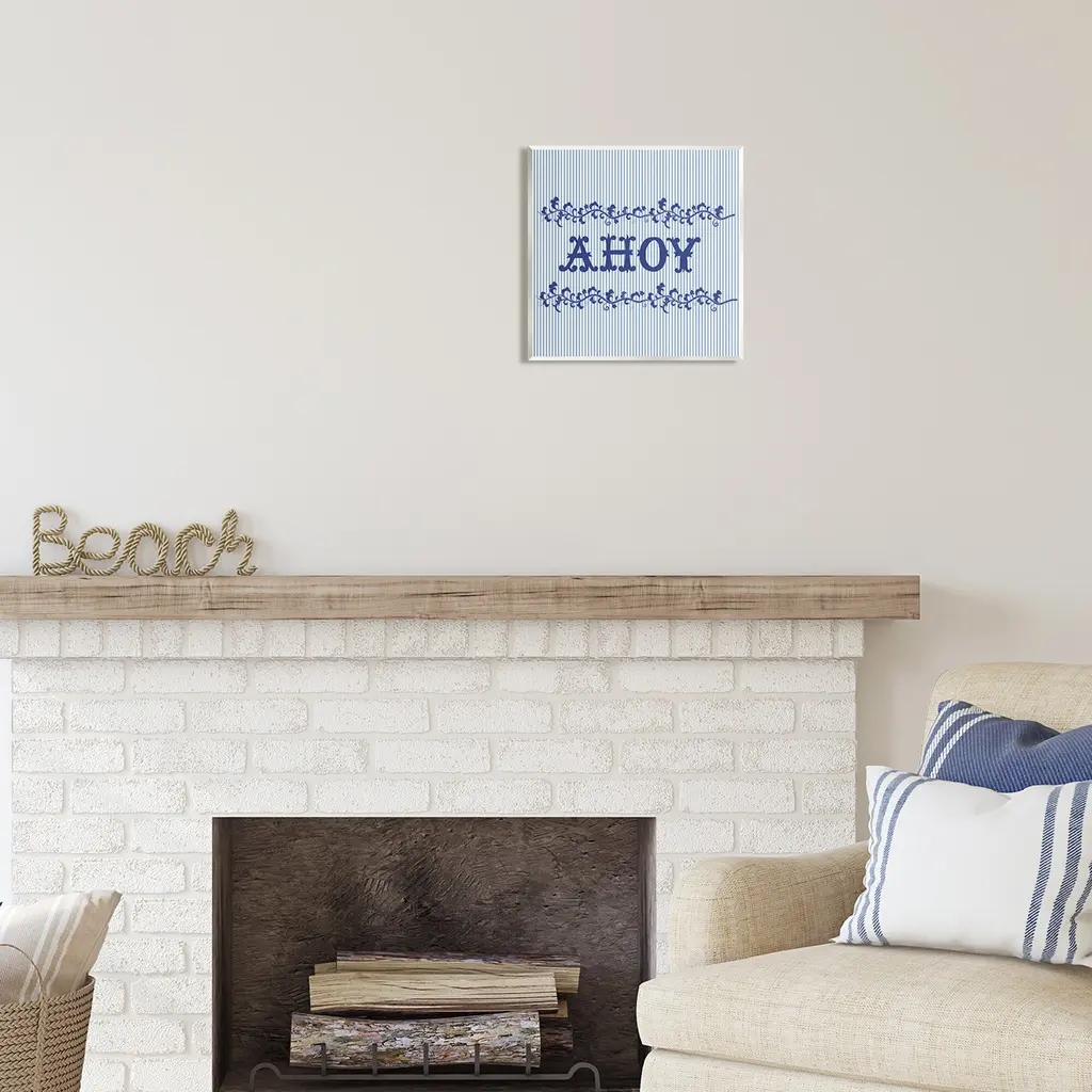 Stupell Ahoy On Blue Stripes Wall Plaque Art Design By Sharon Lee - 12 X 12