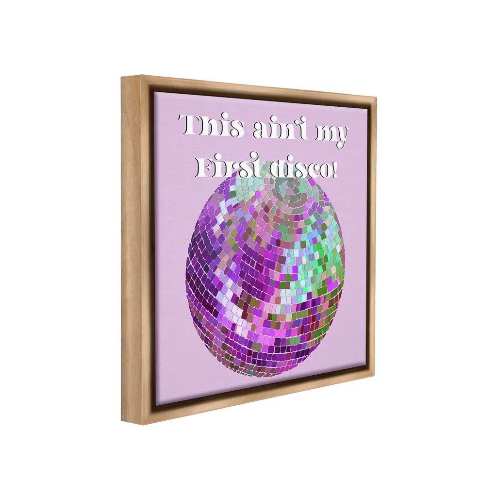 Elevate your home or office to the next level with Stupell Framed Floating Canvas Wall Art. Our premium hand-stretched canvas is mounted securely into a sturdy lightweight frame. The museum-style gap between the wrapped canvas and the box frame gives the illusion of floating artwork. Stupell Wall Art is made in the USA.Features: Dimensions: 18 x 1.7 x 18 Frame, 17 x 1.5 x 17 Canvas ArtFloating Frame Canvas Products are available in sizes 18"x18" and 25"x25". All Floating Frame Canvas Products have a 1.7" Depth.Wall Art is Ready to Hang with Hardware Free Hanging. No Installation required. For Easy Set Up Lean or Layer Artwork on Shelf or Against Wall. Artwork is Permently Fixed into the Frame.Our elevated 1.7" Thick Floating Frame is the perfect complement to our canvas style Wall Art. We use only the highest quality inks in house with industry leading printing solutions. Canvas is hand stretched over a durable wood foundation and then mounted securly into a Modern Box Frame. Made in the USA.Artwork Relates To: Dance, Music, Disco, Pattern, Phrase, Glam, This Ain't My First DiscoDesign by Regina Moore