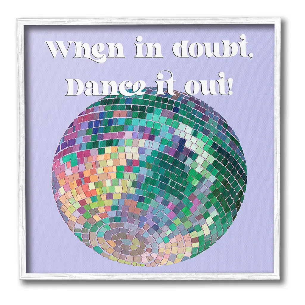 Add dimension to any room with our textured Framed Giclee Artwork. Our framed artwork is securely mounted into a 1.5-inch thick wood grain frame and ready to hang. Frames are available in three alluring styles: black, gray farmhouse and white. In addition, you should check out our oversized options if you want a statement piece. Stupell Wall Art is made in the USA.Features: Dimensions: 12 x 1.5 x 12 FramedFramed Giclee Product Sizes Include 12"x12", 17"x17", and 24"x24". Framed Giclee Products have a 1.5" Depth. Wall Art is Ready to Hang with Hardware Free Hanging. No installation required. For Easy Set Up Lean or Layer Artwork on Shelf or Against Wall.Our giclée prints are carefully mounted on a durable MDF backing, and then perfectly finished in a 1.5 inch thick woodgrain frame. Mounted frame colors include black, gray farmhouse and white. Made In USA.Artwork Relates To: Dance, Music, Disco, Pattern, Phrase, Glam, This Ain't My First DiscoDesign by Regina Moore