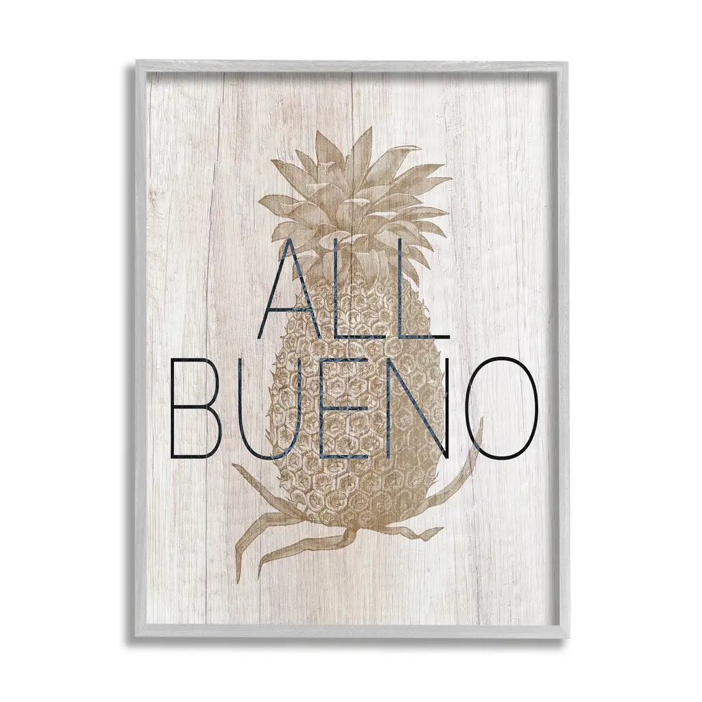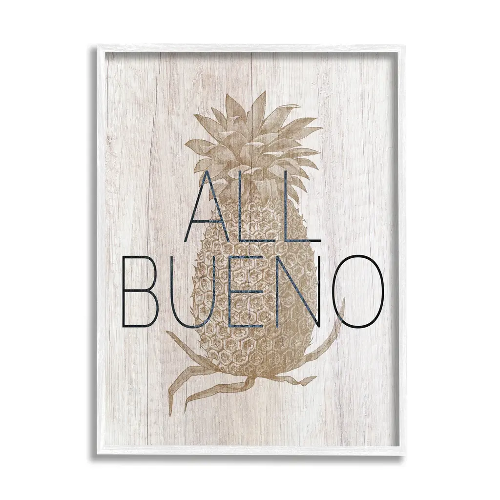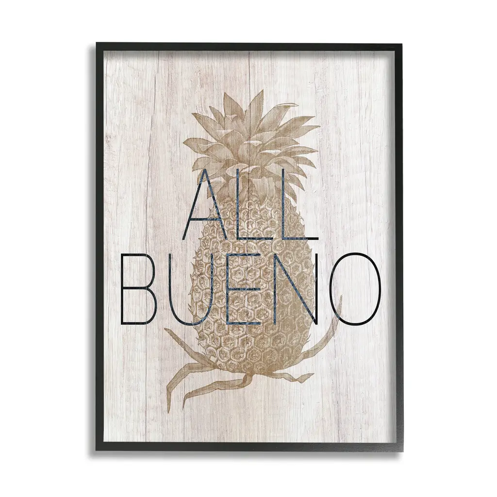 Stupell All Bueno Phrase Vintage Pineapple Illustration Rustic Pattern Framed Wall Art - White - 16 X 20 - Black