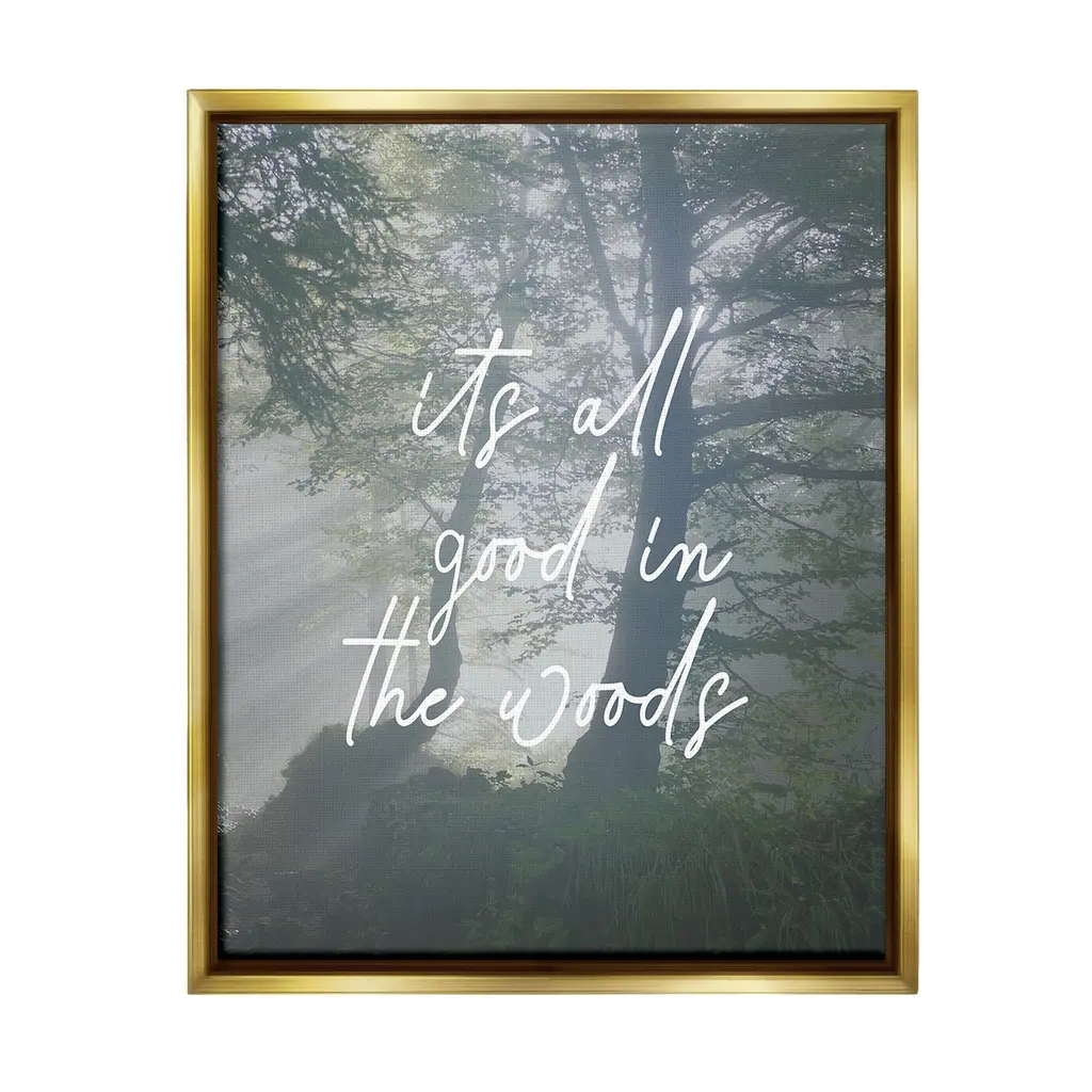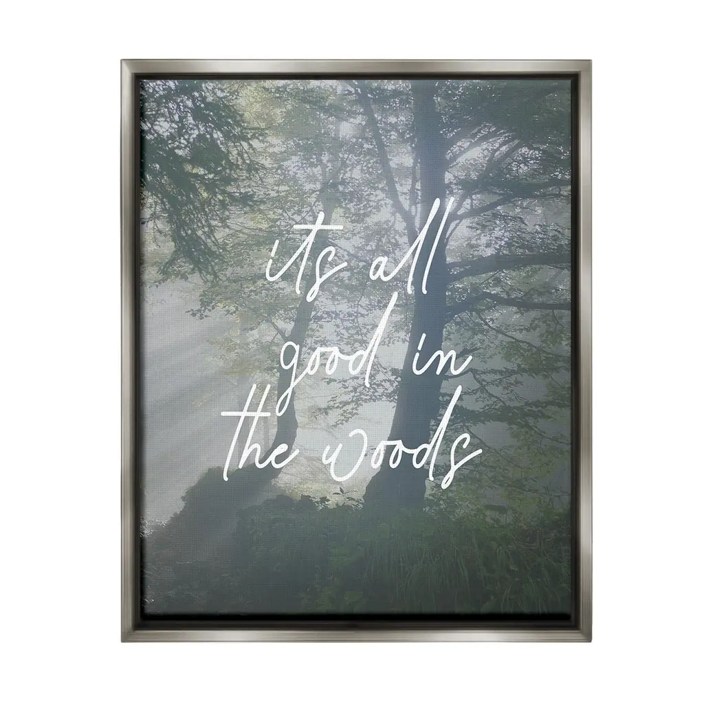 Elevate your home or office to the next level with Stupell Framed Floating Canvas Wall Art. Our premium hand-stretched canvas is mounted securely into a sturdy lightweight frame. The museum-style gap between the wrapped canvas and the box frame gives the illusion of floating artwork. Stupell Wall Art is made in the USA.Features: Dimensions: 17 x 1.7 x 21 Frame, 16 x 1.5 x 20 Canvas ArtFloating Frame Canvas Products are available in sizes 17"x21" and 25"x31". All Floating Frame Canvas Products have a 1.7" Depth.Wall Art is Ready to Hang with Hardware Free Hanging. No Installation required. For Easy Set Up Lean or Layer Artwork on Shelf or Against Wall. Artwork is Permently Fixed into the Frame.Our elevated 1.7" Thick Floating Frame is the perfect complement to our canvas style Wall Art. We use only the highest quality inks in house with industry leading printing solutions. Canvas is hand stretched over a durable wood foundation and then mounted securly into a Modern Box Frame. Made in the USA.Artwork Relates To: Plant, Vegetation, Nature, Tree, Woodland, Weather, Grove, Wilderness, Forest, Woodland, It's All Good in the WoodsDesign by Lil' Rue