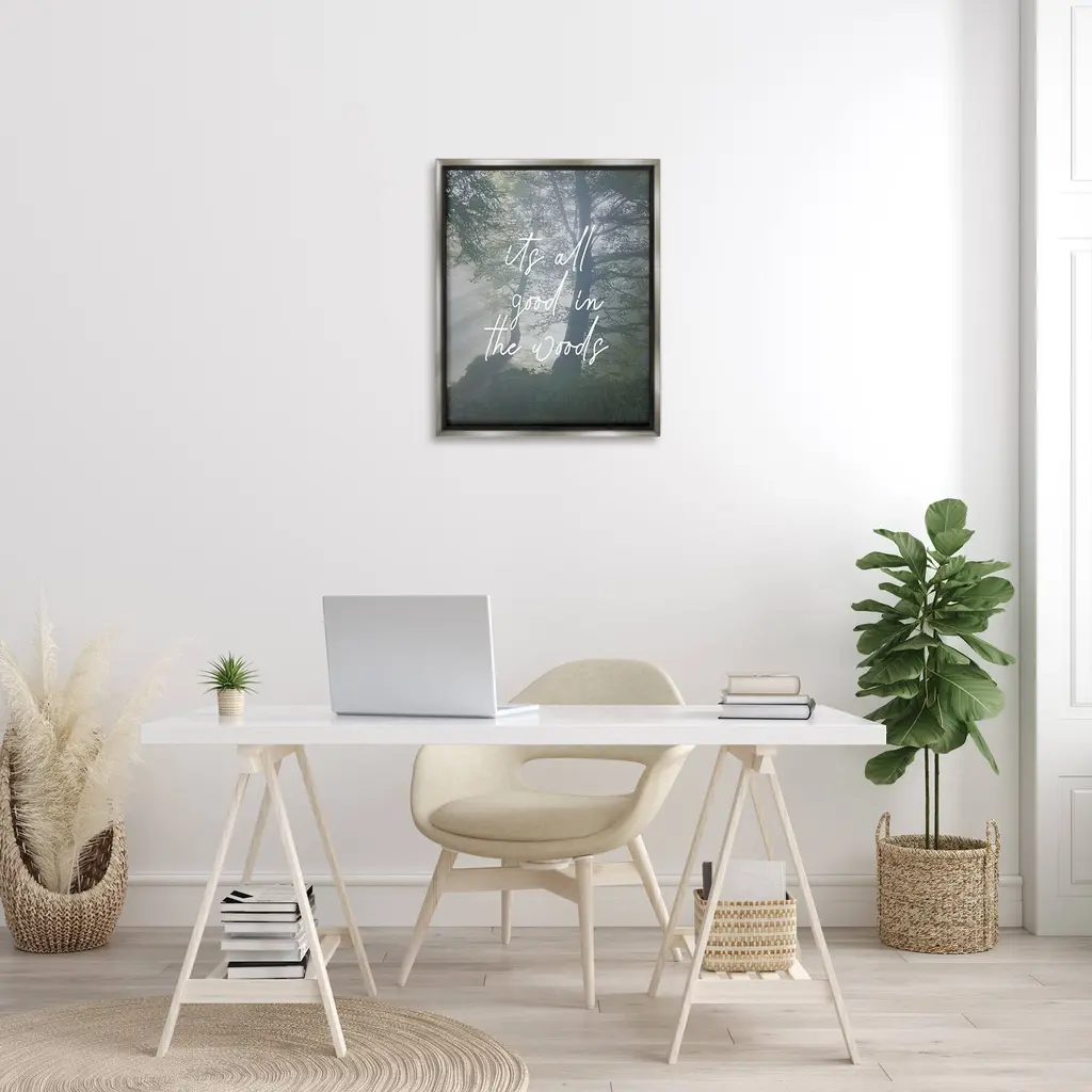 Elevate your home or office to the next level with Stupell Framed Floating Canvas Wall Art. Our premium hand-stretched canvas is mounted securely into a sturdy lightweight frame. The museum-style gap between the wrapped canvas and the box frame gives the illusion of floating artwork. Stupell Wall Art is made in the USA.Features: Dimensions: 17 x 1.7 x 21 Frame, 16 x 1.5 x 20 Canvas ArtFloating Frame Canvas Products are available in sizes 17"x21" and 25"x31". All Floating Frame Canvas Products have a 1.7" Depth.Wall Art is Ready to Hang with Hardware Free Hanging. No Installation required. For Easy Set Up Lean or Layer Artwork on Shelf or Against Wall. Artwork is Permently Fixed into the Frame.Our elevated 1.7" Thick Floating Frame is the perfect complement to our canvas style Wall Art. We use only the highest quality inks in house with industry leading printing solutions. Canvas is hand stretched over a durable wood foundation and then mounted securly into a Modern Box Frame. Made in the USA.Artwork Relates To: Plant, Vegetation, Nature, Tree, Woodland, Weather, Grove, Wilderness, Forest, Woodland, It's All Good in the WoodsDesign by Lil' Rue