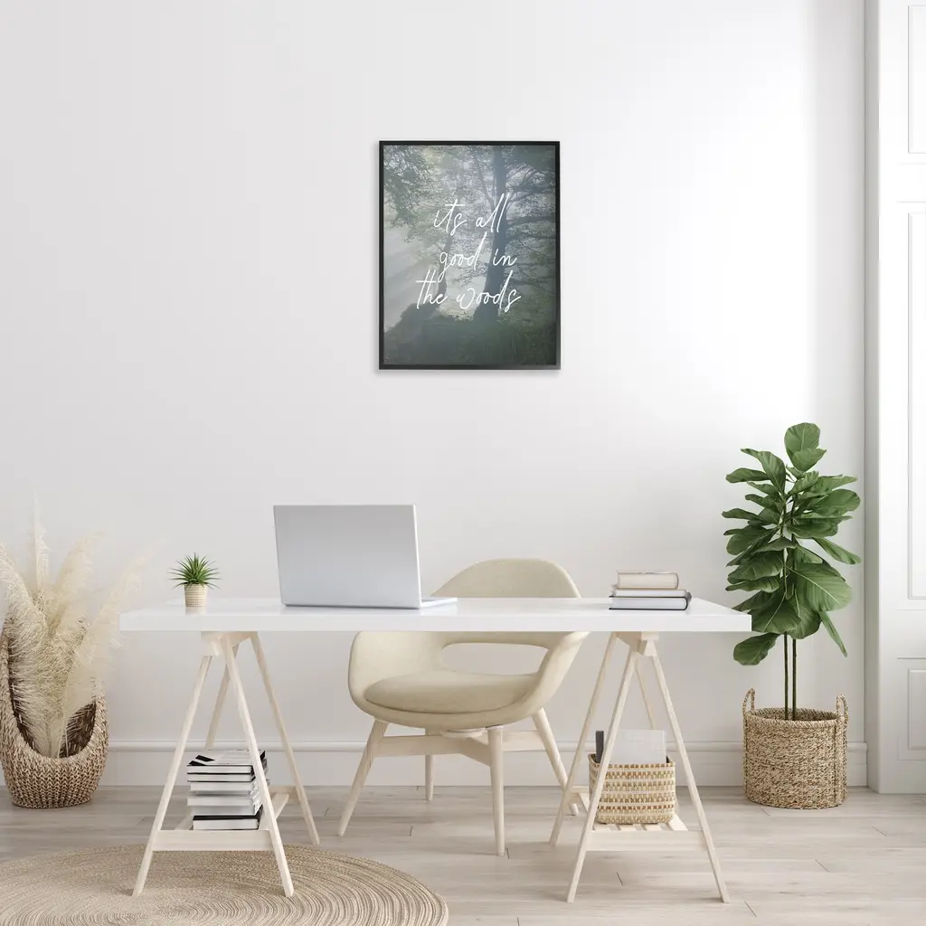 Add dimension to any room with our textured Framed Giclee Artwork. Our framed artwork is securely mounted into a 1.5-inch thick wood grain frame and ready to hang. Frames are available in three alluring styles: black, gray farmhouse and white. In addition, you should check out our oversized options if you want a statement piece. Stupell Wall Art is made in the USA.Features: Dimensions: 11 x 1.5 x 14 FramedFramed Giclee Products are available in the sizes 11"x14", 16"x20" or 24"x30". All Framed Giclee Products have a 1.5" Depth. Wall Art is Ready to Hang with Hardware Free Hanging. No installation required. For Easy Set Up Lean or Layer Artwork on Shelf or Against Wall.Our giclée prints are carefully mounted on a durable MDF backing, and then perfectly finished in a 1.5 inch thick woodgrain frame. Mounted frame colors include black, gray farmhouse and white. Made In USA.Artwork Relates To: Plant, Vegetation, Nature, Tree, Woodland, Weather, Grove, Wilderness, Forest, Woodland, It's All Good in the WoodsDesign by Lil' Rue