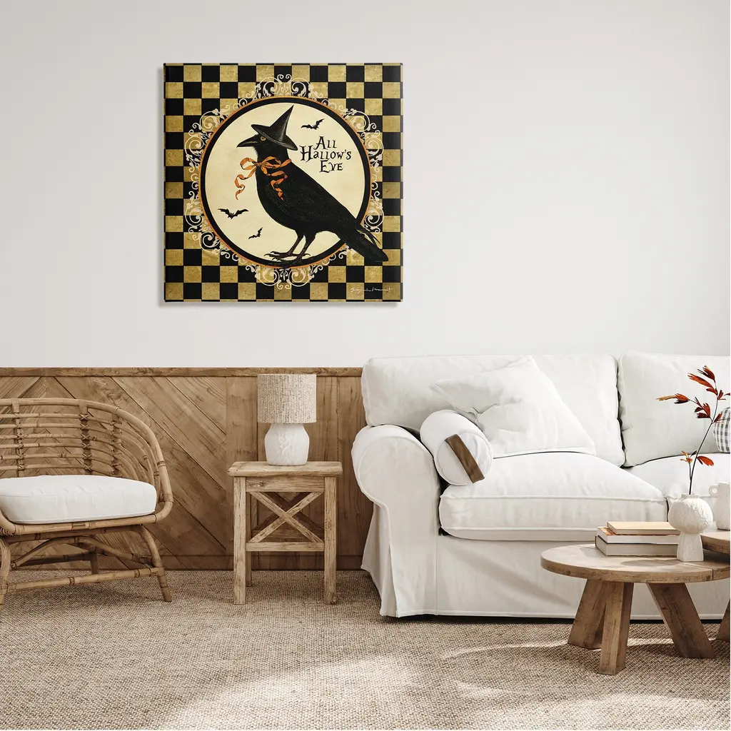 We create our stretched canvas to the highest standards. Using only the highest quality inks and canvas on Mimaki printers, we hand-cut and stretch each piece over a 1.5-inch thick wooden frame for hanging. As a result, the art comes ready to hang on the sturdy ledge with no installation required. Stupell Wall Art is made in the USA.Features: Dimensions: 17 x 1.5 x 17 InchesStretched Canvas Sizes Include Standard: 17 x 1.5 x 17 Large: 24 x 1.5 x 24 X-Large: 30 x 1.5 x 30 Oversized: 36 x 1.5 x 36Wall Art is Ready to Hang - No Installation or Hardware Needed. For Easy Set Up Lean or Layer Artwork on Shelf or Against Wall.Our stretched canvas is created with the highest standards. We use only the highest quality inks and canvas on our in house Mimaki printers, and then hand cut and stretch each piece over a 1.5 inch thick wooden frame for hanging. Made In USA.Artwork Relates To: Witch, Halloween, Festive, Seasonal, Spooky, Vintage, Crow, Raven, Checkered, Pattern, All Hallow's EveDesign by Stephanie Workman Marrott