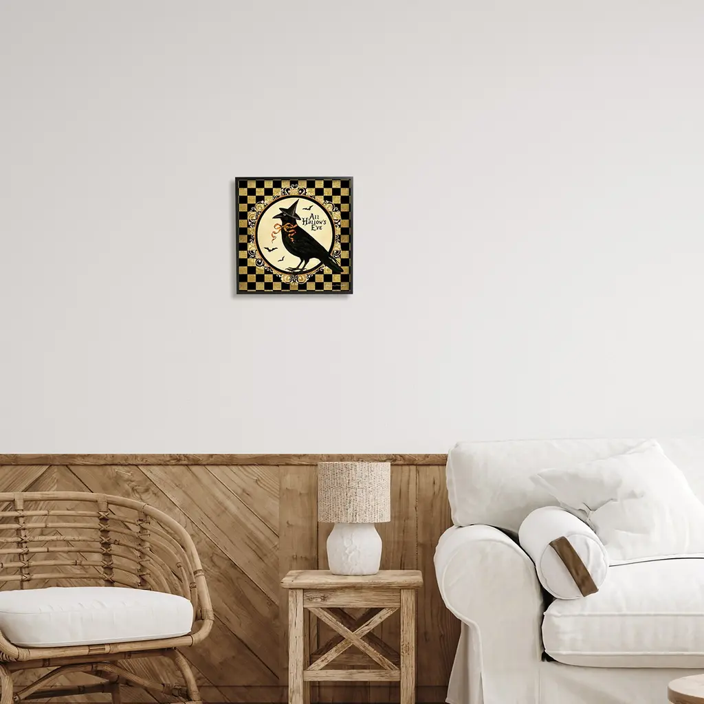 Add dimension to any room with our textured Framed Giclee Artwork. Our framed artwork is securely mounted into a 1.5-inch thick wood grain frame and ready to hang. Frames are available in three alluring styles: black, gray farmhouse and white. In addition, you should check out our oversized options if you want a statement piece. Stupell Wall Art is made in the USA.Features: Dimensions: 12 x 1.5 x 12 FramedFramed Giclee Sizes Include Standard: 12 x 1.5 x 12 Large: 17 x 1.5 x 17 Oversized: 24 x 1.5 x 24Wall Art is Ready to Hang - No Installation or Hardware Needed. For Easy Set Up Lean or Layer Artwork on Shelf or Against Wall.Our giclée prints are carefully mounted on a durable MDF backing, and then perfectly finished in a 1.5 inch thick woodgrain frame. Mounted frame colors include black, gray farmhouse and white. Made In USA.Artwork Relates To: Witch, Halloween, Festive, Seasonal, Spooky, Vintage, Crow, Raven, Checkered, Pattern, All Hallow's EveDesign by Stephanie Workman Marrott