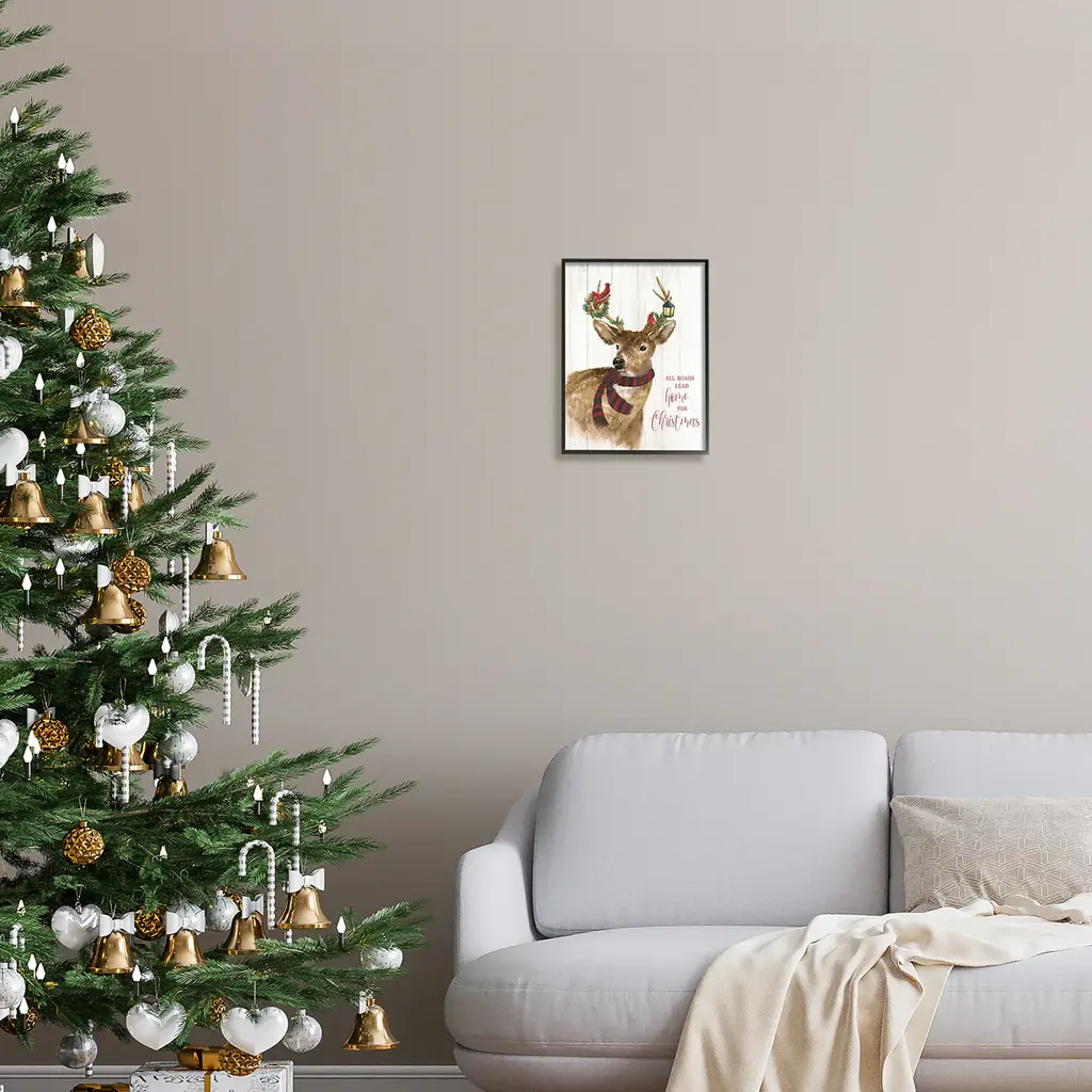 Add dimension to any room with our textured Framed Giclee Artwork. Our framed artwork is securely mounted into a 1.5-inch thick wood grain frame and ready to hang. Frames are available in three alluring styles: black, gray farmhouse and white. In addition, you should check out our oversized options if you want a statement piece. Stupell Wall Art is made in the USA.Features: Dimensions: 11 x 1.5 x 14 FramedFramed Giclee Sizes Include Standard: 11 x 1.5 x 14 Large: 16 x 1.5 x 20 Oversized: 24 x 1.5 x 30Wall Art is Ready to Hang - No Installation or Hardware Needed. For Easy Set Up Lean or Layer Artwork on Shelf or Against Wall.Our giclée prints are carefully mounted on a durable MDF backing, and then perfectly finished in a 1.5 inch thick woodgrain frame. Mounted frame colors include black, gray farmhouse and white. Made In USA.Artwork Relates To: Holiday, Seasonal, Christmas, Winter, Deer, Farmhouse, Holly Berry, Cardinal, All Roads Lead Home For ChristmasDesign by Nan