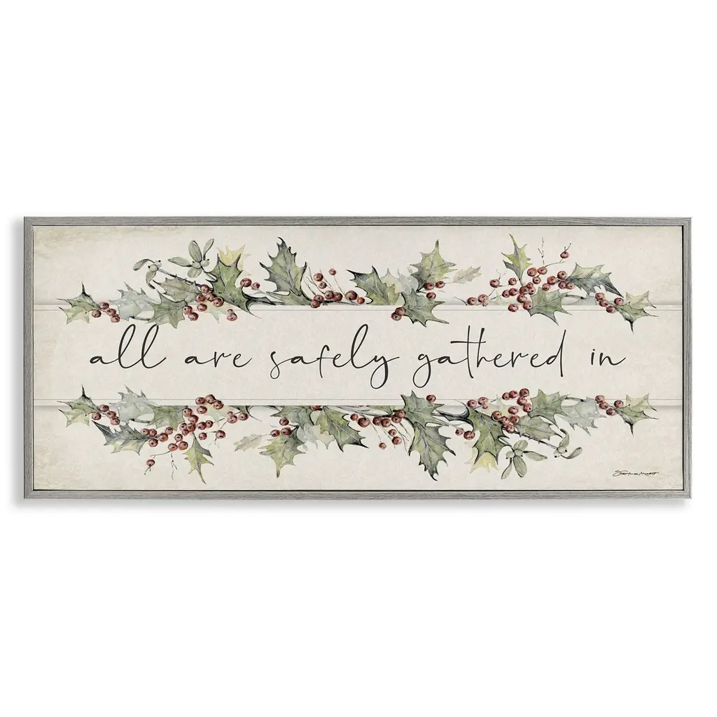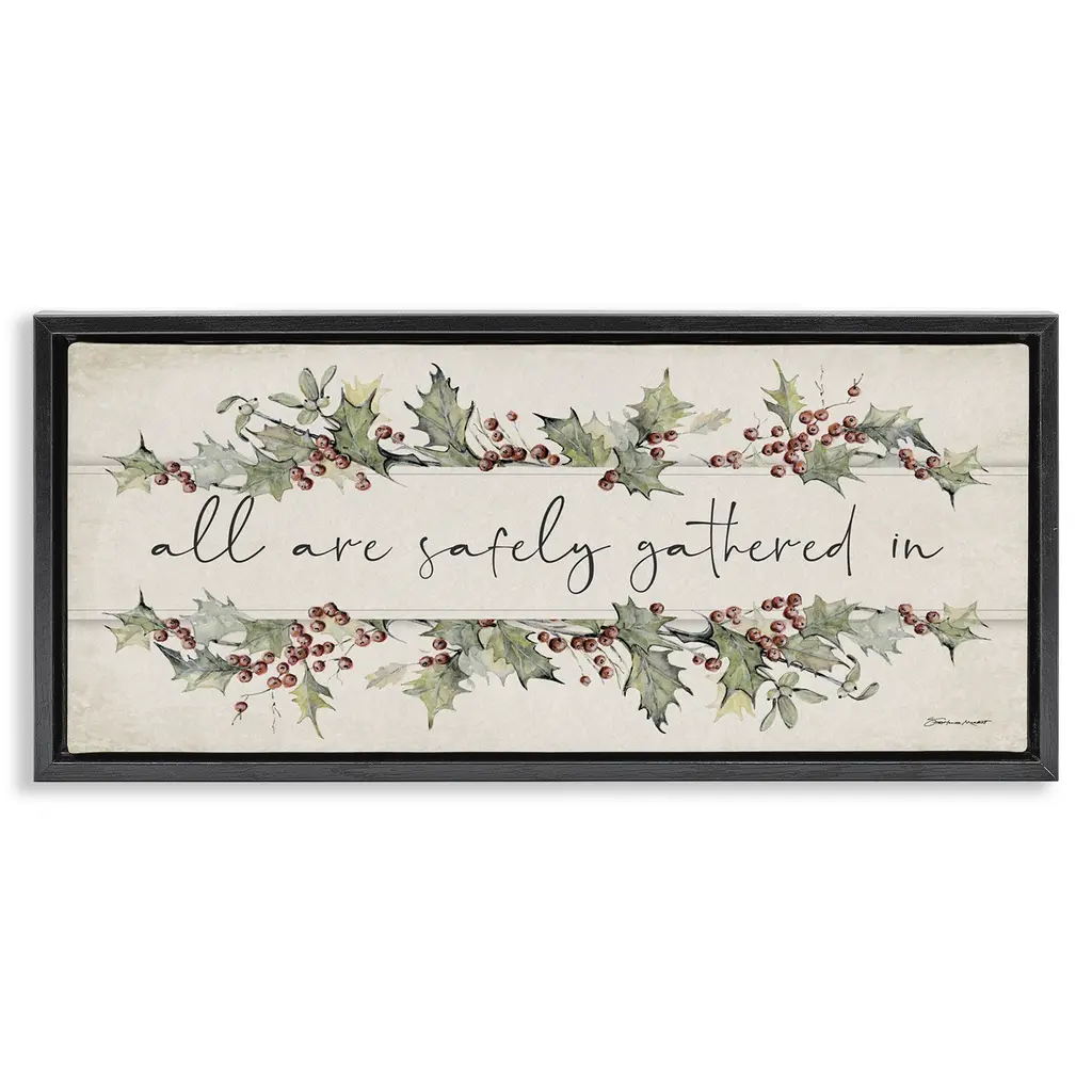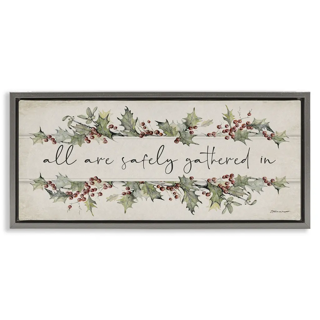 Stupell All Safely Gathered Phrase Framed Floater Canvas Wall Art Design By Stephanie Workman Marrott - 31 X 14 - Grey