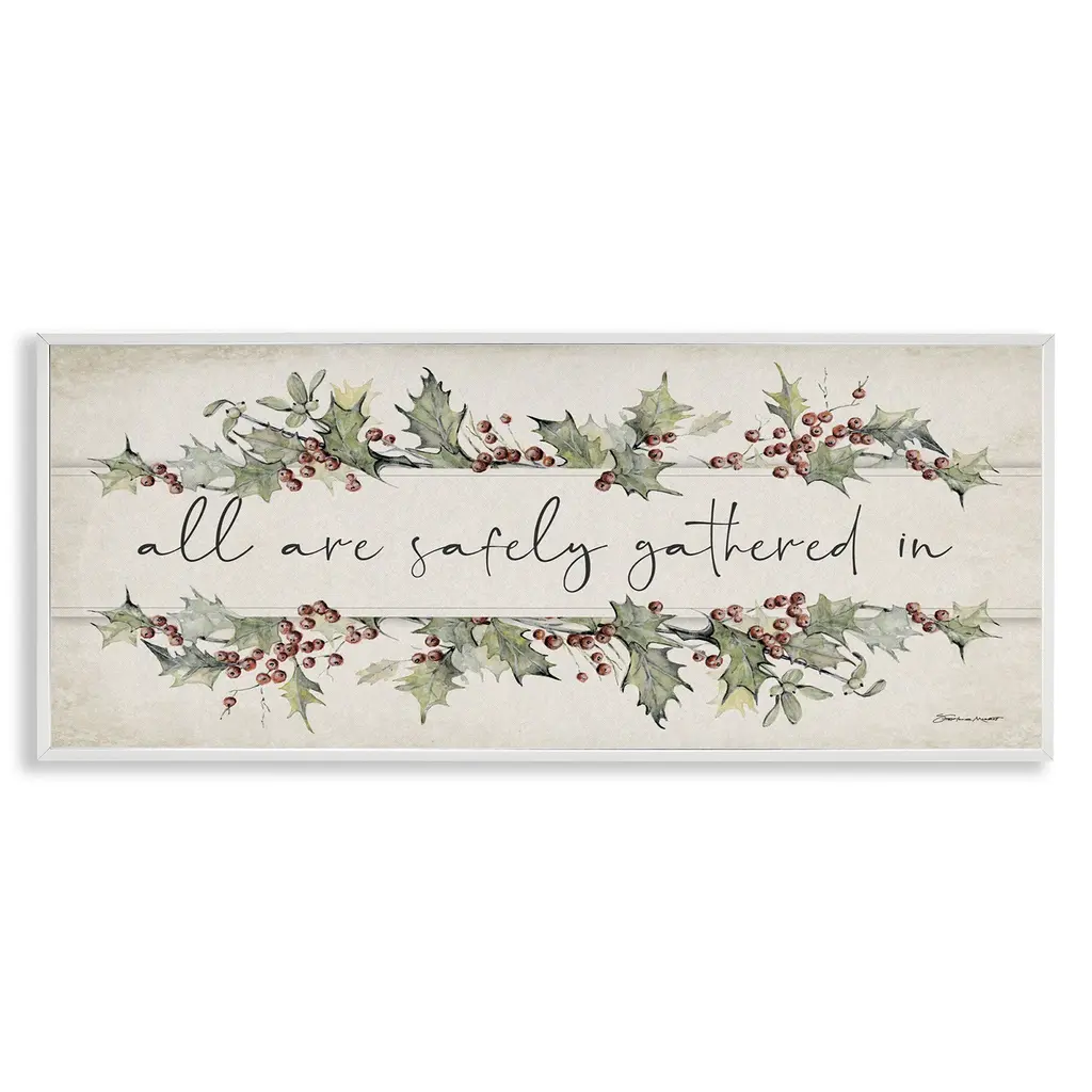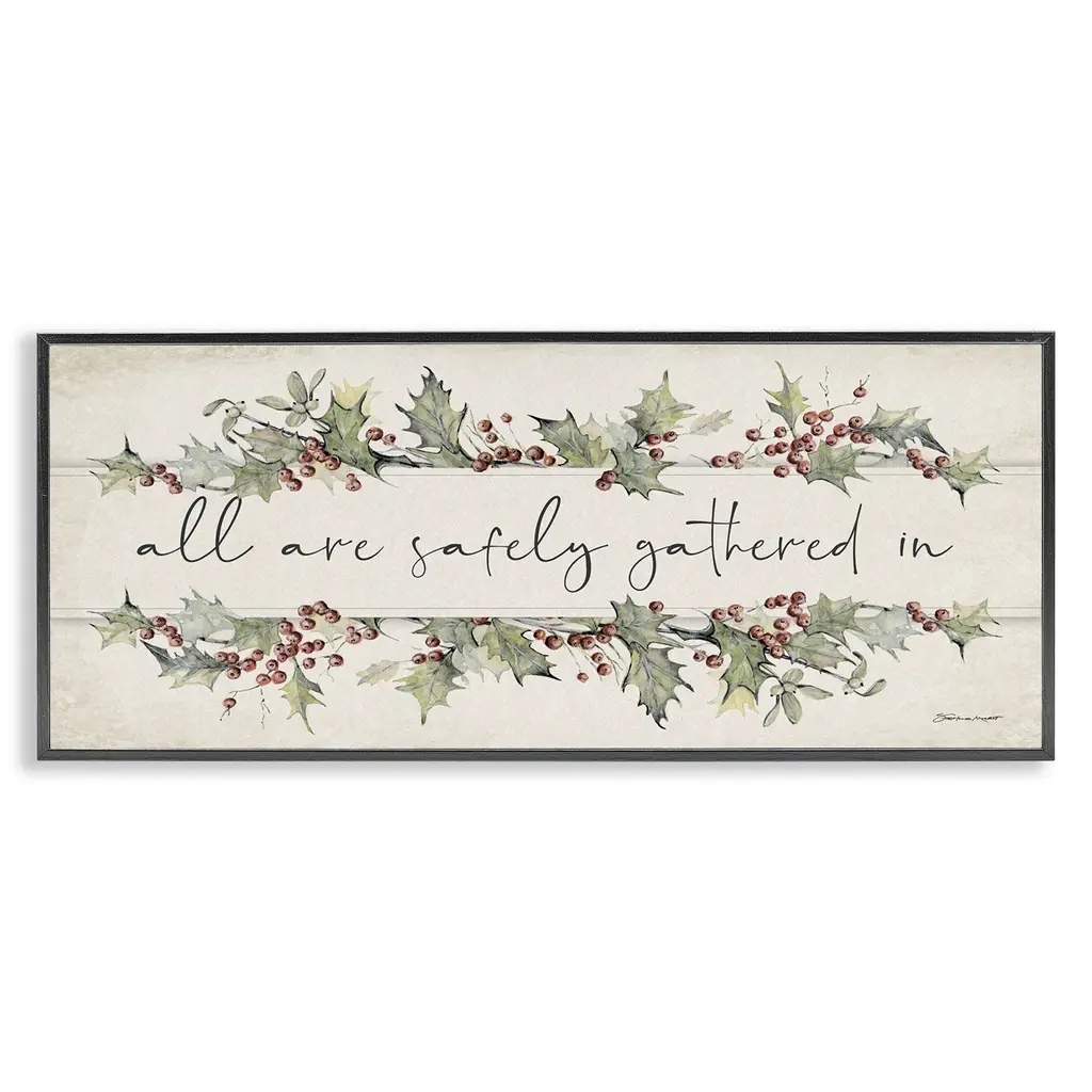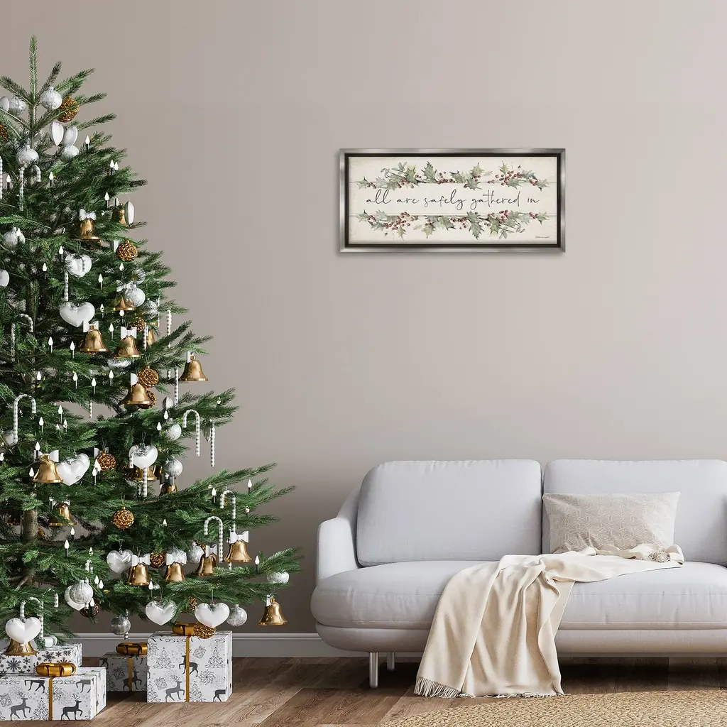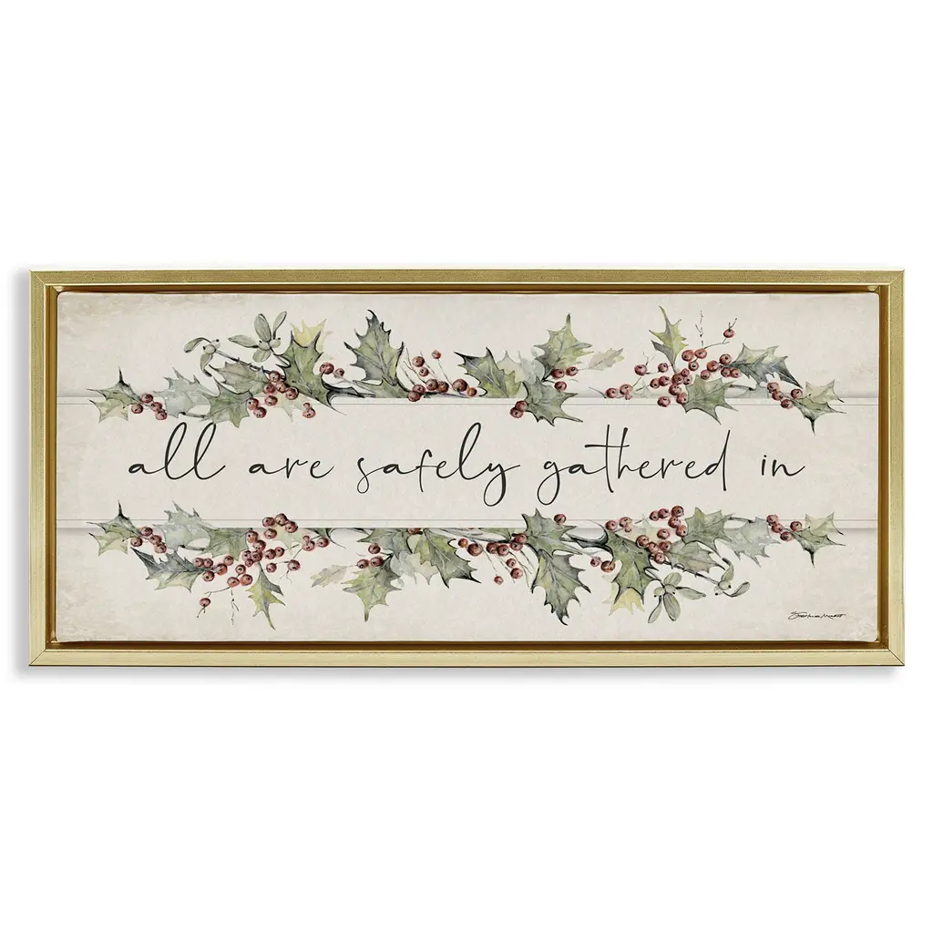 Stupell All Safely Gathered Phrase Framed Floater Canvas Wall Art Design By Stephanie Workman Marrott - 31 X 14 - Grey
