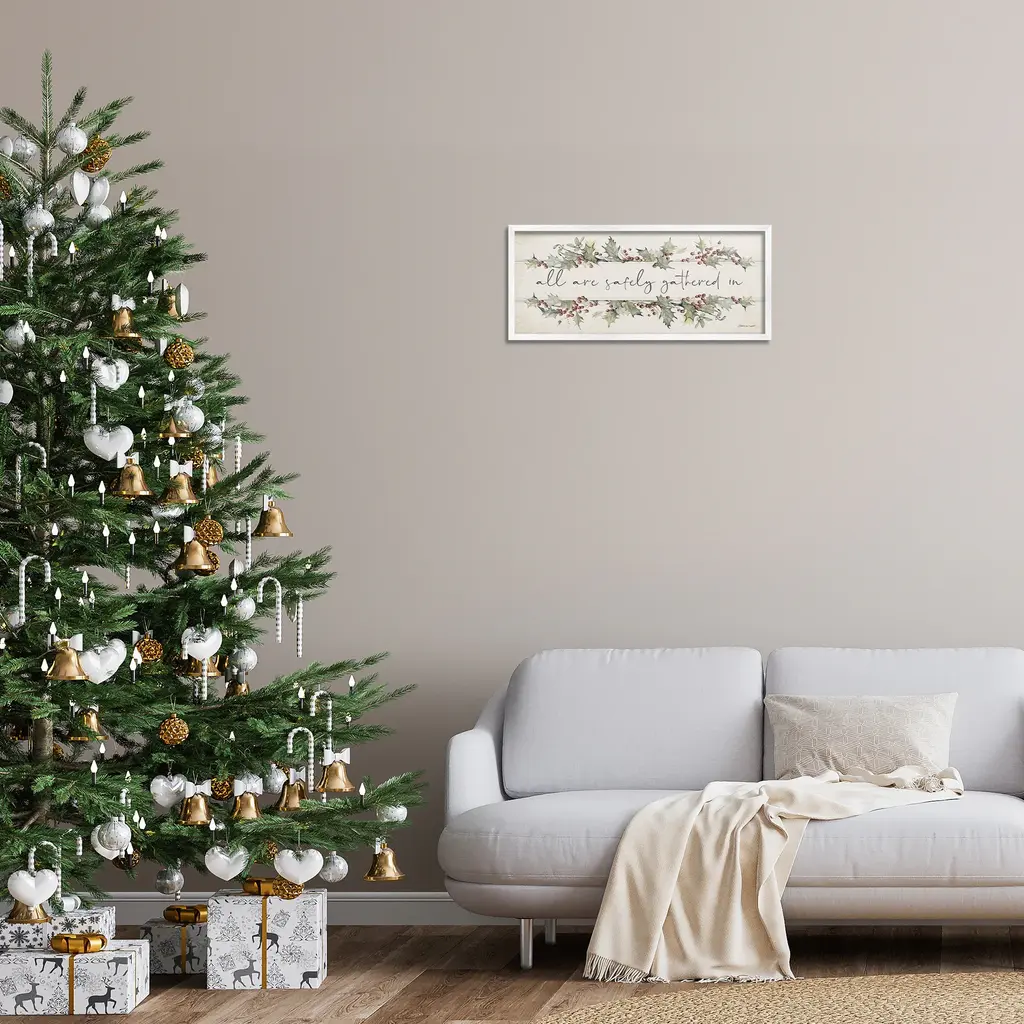 Stupell All Safely Gathered Phrase Framed Giclee Art Design By Stephanie Workman Marrott - 24 X 10 - White