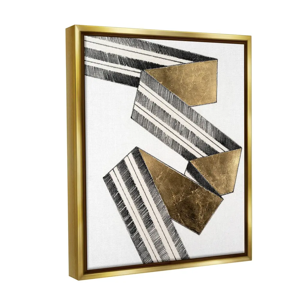 Stupell Alternating Geometric Ribbon Framed Floater Canvas Wall Art Design By Vanna Lam - 17 X 21 - Gold