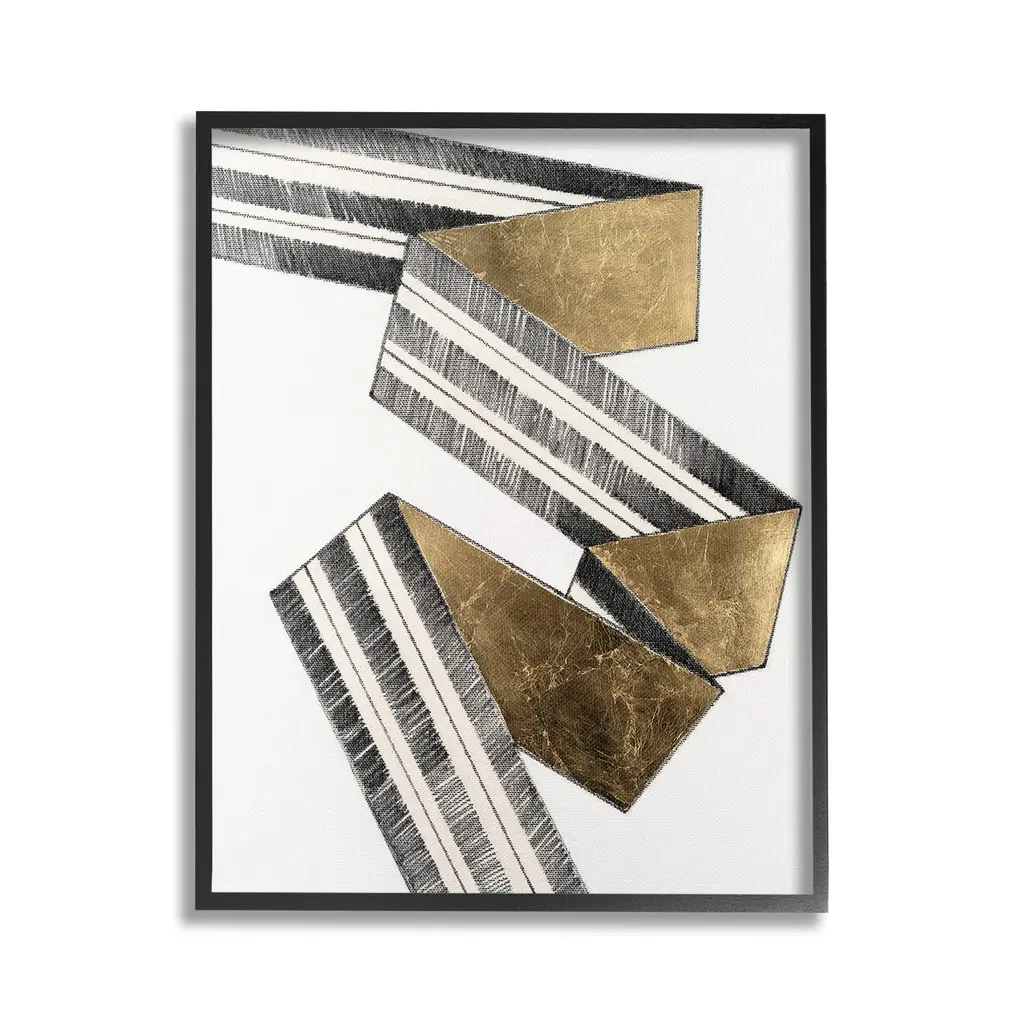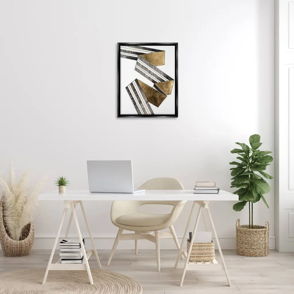 Stupell Alternating Geometric Ribbon Framed Floater Canvas Wall Art Design By Vanna Lam - 25 X 31 - Black