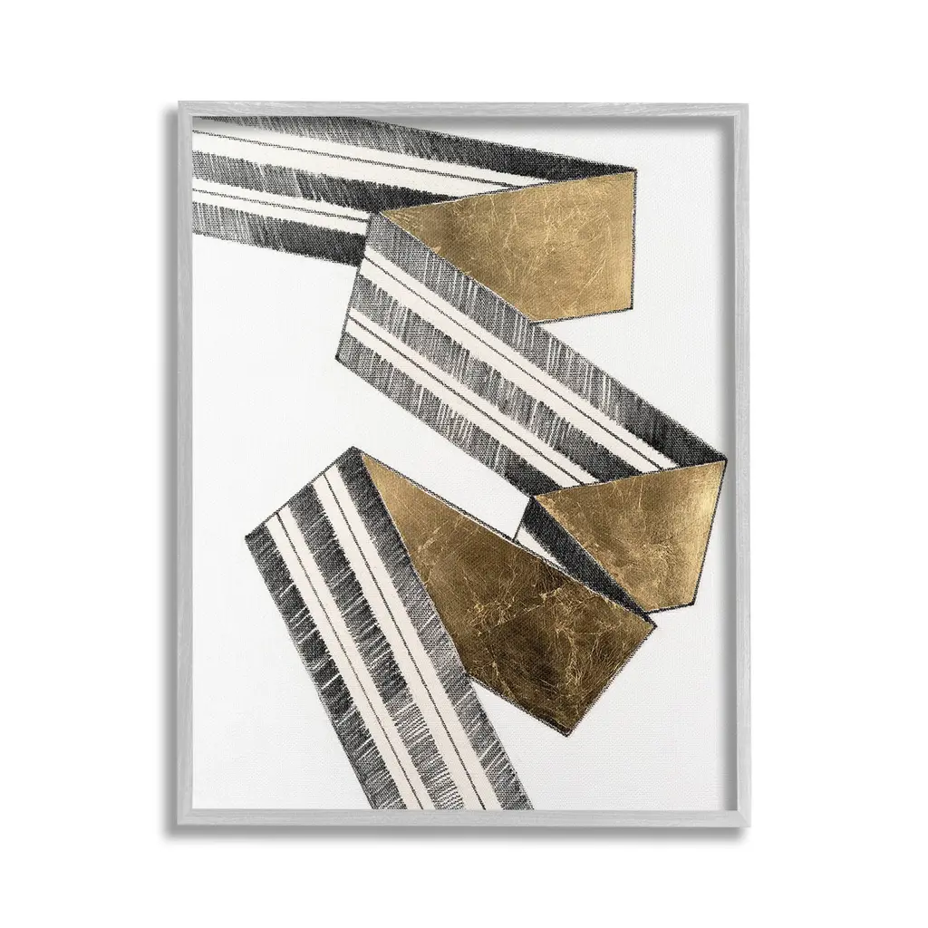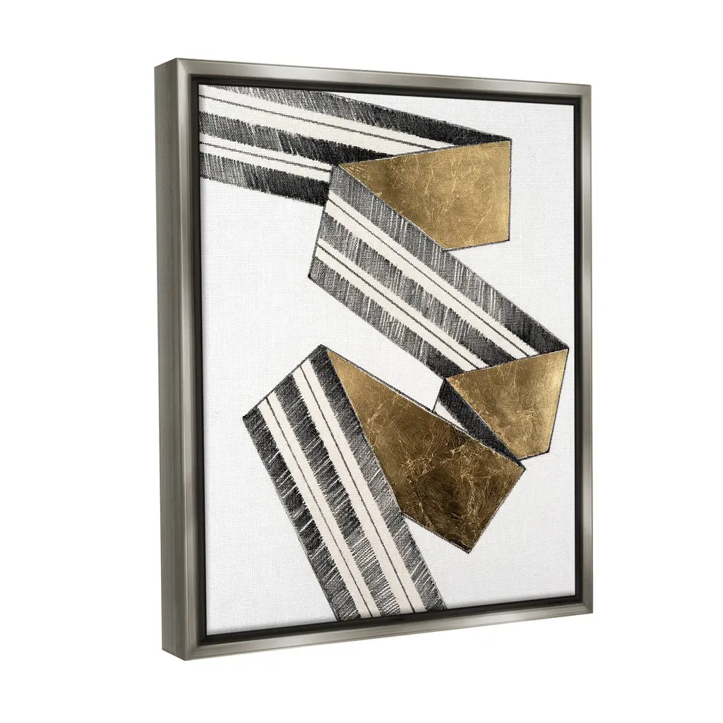 Stupell Alternating Geometric Ribbon Framed Floater Canvas Wall Art Design By Vanna Lam - 25 X 31 - Grey