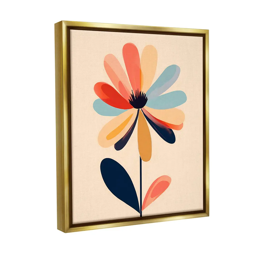 Elevate your home or office to the next level with Stupell Framed Floating Canvas Wall Art. Our premium hand-stretched canvas is mounted securely into a sturdy lightweight frame. The museum-style gap between the wrapped canvas and the box frame gives the illusion of floating artwork. Stupell Wall Art is made in the USA.Features: Dimensions: 17 x 1.7 x 21 Frame, 16 x 1.5 x 20 Canvas ArtFloating Frame Canvas Products are available in sizes 17"x21" and 25"x31". All Floating Frame Canvas Products have a 1.7" Depth.Wall Art is Ready to Hang with Hardware Free Hanging. No Installation required. For Easy Set Up Lean or Layer Artwork on Shelf or Against Wall. Artwork is Permently Fixed into the Frame.Our elevated 1.7" Thick Floating Frame is the perfect complement to our canvas style Wall Art. We use only the highest quality inks in house with industry leading printing solutions. Canvas is hand stretched over a durable wood foundation and then mounted securly into a Modern Box Frame. Made in the USA.Artwork Relates To: Modern, Abstract, Floral, Flower, Blossom, Pattern, Geometric, Bloom, RetroDesign by Walker Noble