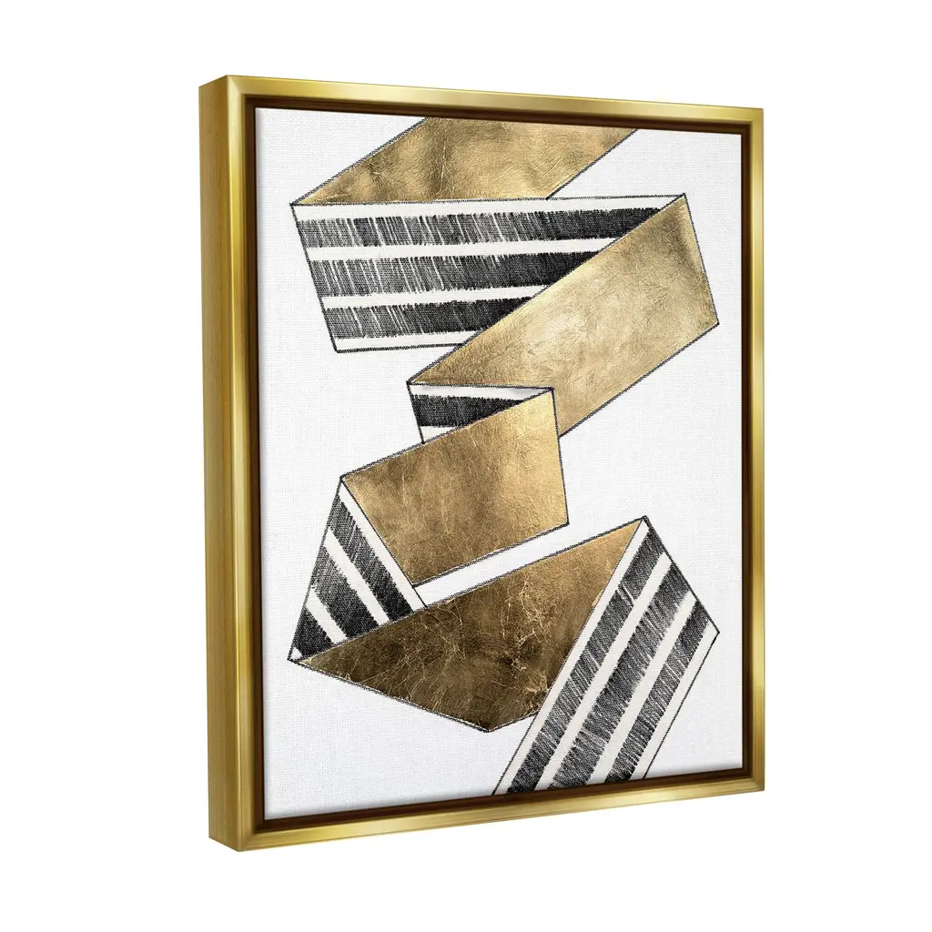 Stupell Alternating Striped Ribbon Framed Floater Canvas Wall Art Design By Vanna Lam - 17 X 21 - Gold