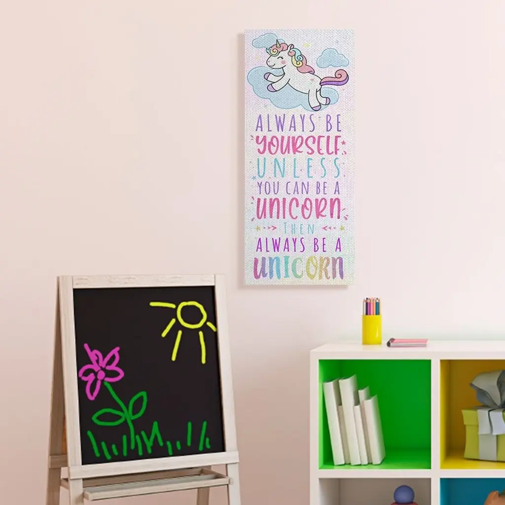 Stupell Always Be Yourself Or A Unicorn Quote Kid's Pink Design Canvas Wall Art - Multi-Color - 10 X 24