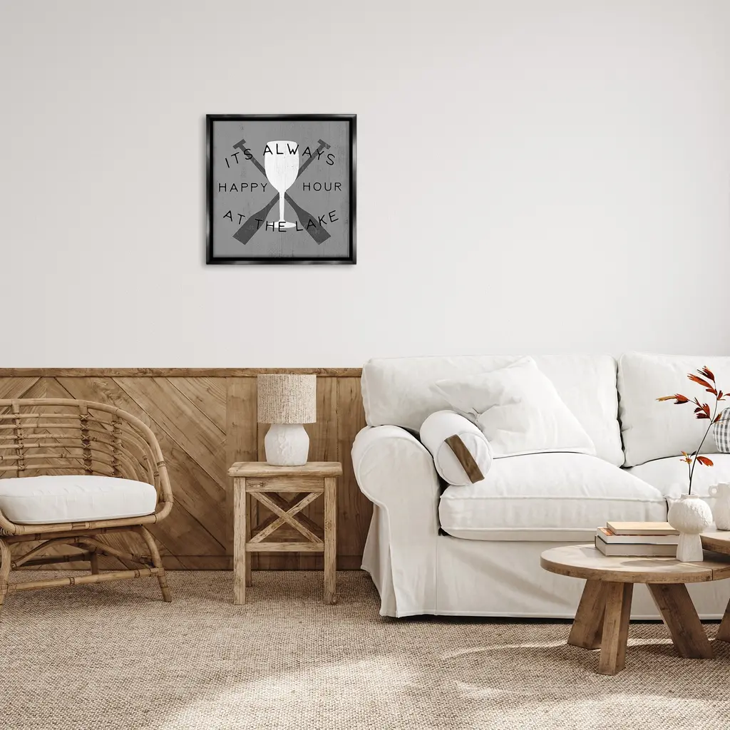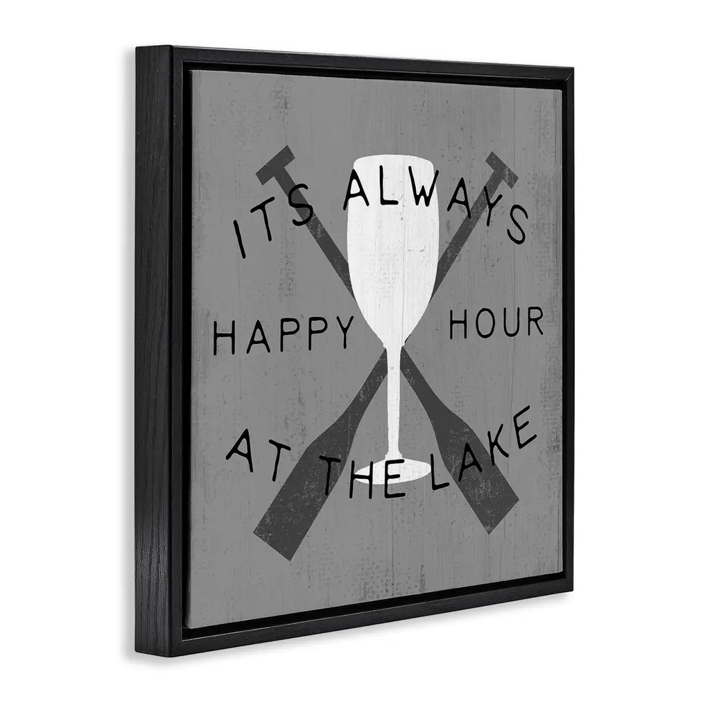 Stupell Always Happy Hour At Lake Framed Floater Canvas Wall Art Design By Daphne Polselli - 25 X 25 - Black
