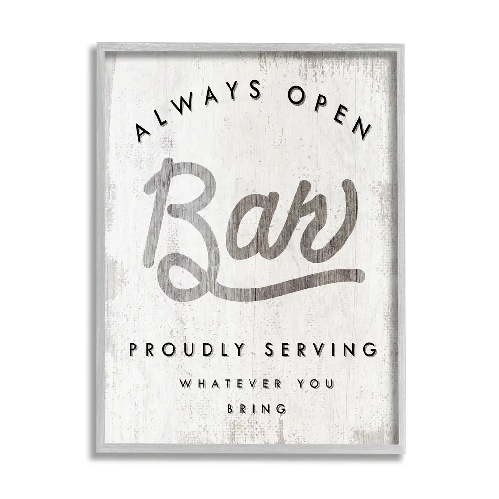 Stupell Always Open Byob Bar Sign Funny Drinking Phrase Framed Wall Art - 24 X 30 - Black
