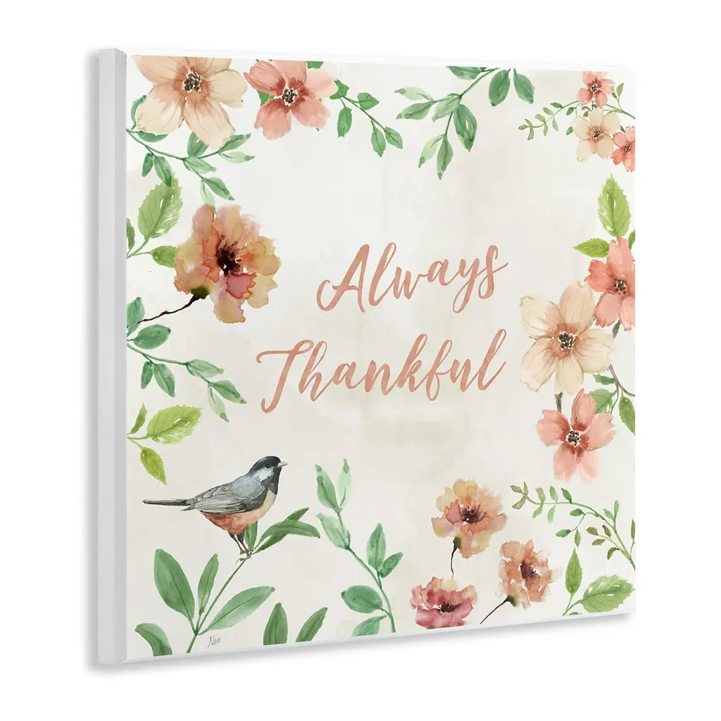Stupell Always Thankful Floral Wall Plaque Art Design By Nan - 12 X 12