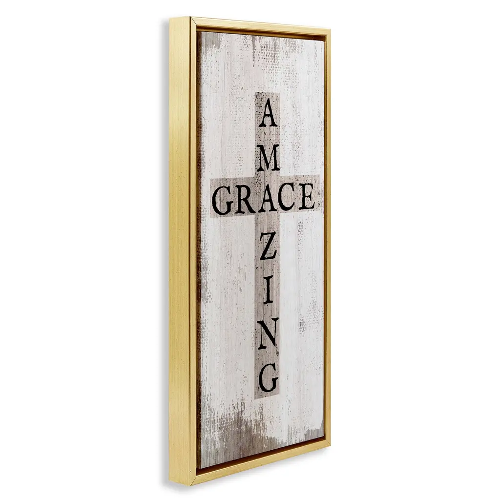 Elevate your home or office to the next level with Stupell Framed Floating Canvas Wall Art. Our premium hand-stretched canvas is mounted securely into a sturdy lightweight frame. The museum-style gap between the wrapped canvas and the box frame gives the illusion of floating artwork. Stupell Wall Art is made in the USA.Features: Dimensions: 11 x 1.7 x 25 Frame, 10 x 1.5 x 24 Canvas ArtFloating Frame Canvas Products are available in sizes 11"x25" and 14"x31". All Floating Frame Canvas Products have a 1.7" Depth.Wall Art is Ready to Hang with Hardware Free Hanging. No Installation required. For Easy Set Up Lean or Layer Artwork on Shelf or Against Wall. Artwork is Permently Fixed into the Frame.Our elevated 1.7" Thick Floating Frame is the perfect complement to our canvas style Wall Art. We use only the highest quality inks in house with industry leading printing solutions. Canvas is hand stretched over a durable wood foundation and then mounted securly into a Modern Box Frame. Made in the USA.Artwork Relates To: Phrase, Spiritual, Religious, Amazing Grace, Cross, Christian, Proverb, PrayerDesign by Daphne Polselli
