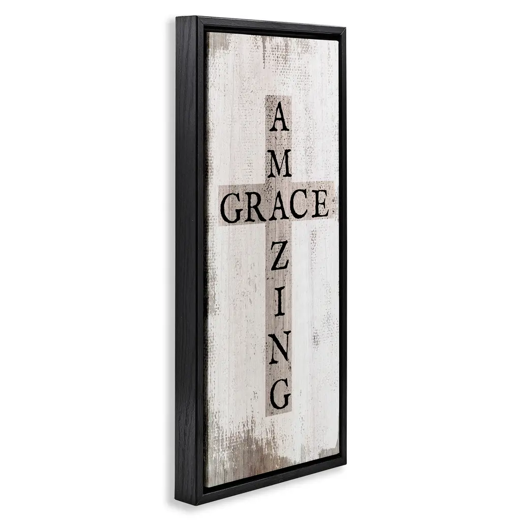 Elevate your home or office to the next level with Stupell Framed Floating Canvas Wall Art. Our premium hand-stretched canvas is mounted securely into a sturdy lightweight frame. The museum-style gap between the wrapped canvas and the box frame gives the illusion of floating artwork. Stupell Wall Art is made in the USA.Features: Dimensions: 11 x 1.7 x 25 Frame, 10 x 1.5 x 24 Canvas ArtFloating Frame Canvas Products are available in sizes 11"x25" and 14"x31". All Floating Frame Canvas Products have a 1.7" Depth.Wall Art is Ready to Hang with Hardware Free Hanging. No Installation required. For Easy Set Up Lean or Layer Artwork on Shelf or Against Wall. Artwork is Permently Fixed into the Frame.Our elevated 1.7" Thick Floating Frame is the perfect complement to our canvas style Wall Art. We use only the highest quality inks in house with industry leading printing solutions. Canvas is hand stretched over a durable wood foundation and then mounted securly into a Modern Box Frame. Made in the USA.Artwork Relates To: Phrase, Spiritual, Religious, Amazing Grace, Cross, Christian, Proverb, PrayerDesign by Daphne Polselli