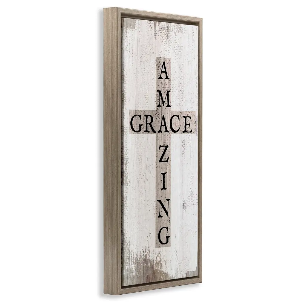 Elevate your home or office to the next level with Stupell Framed Floating Canvas Wall Art. Our premium hand-stretched canvas is mounted securely into a sturdy lightweight frame. The museum-style gap between the wrapped canvas and the box frame gives the illusion of floating artwork. Stupell Wall Art is made in the USA.Features: Dimensions: 11 x 1.7 x 25 Frame, 10 x 1.5 x 24 Canvas ArtFloating Frame Canvas Products are available in sizes 11"x25" and 14"x31". All Floating Frame Canvas Products have a 1.7" Depth.Wall Art is Ready to Hang with Hardware Free Hanging. No Installation required. For Easy Set Up Lean or Layer Artwork on Shelf or Against Wall. Artwork is Permently Fixed into the Frame.Our elevated 1.7" Thick Floating Frame is the perfect complement to our canvas style Wall Art. We use only the highest quality inks in house with industry leading printing solutions. Canvas is hand stretched over a durable wood foundation and then mounted securly into a Modern Box Frame. Made in the USA.Artwork Relates To: Phrase, Spiritual, Religious, Amazing Grace, Cross, Christian, Proverb, PrayerDesign by Daphne Polselli