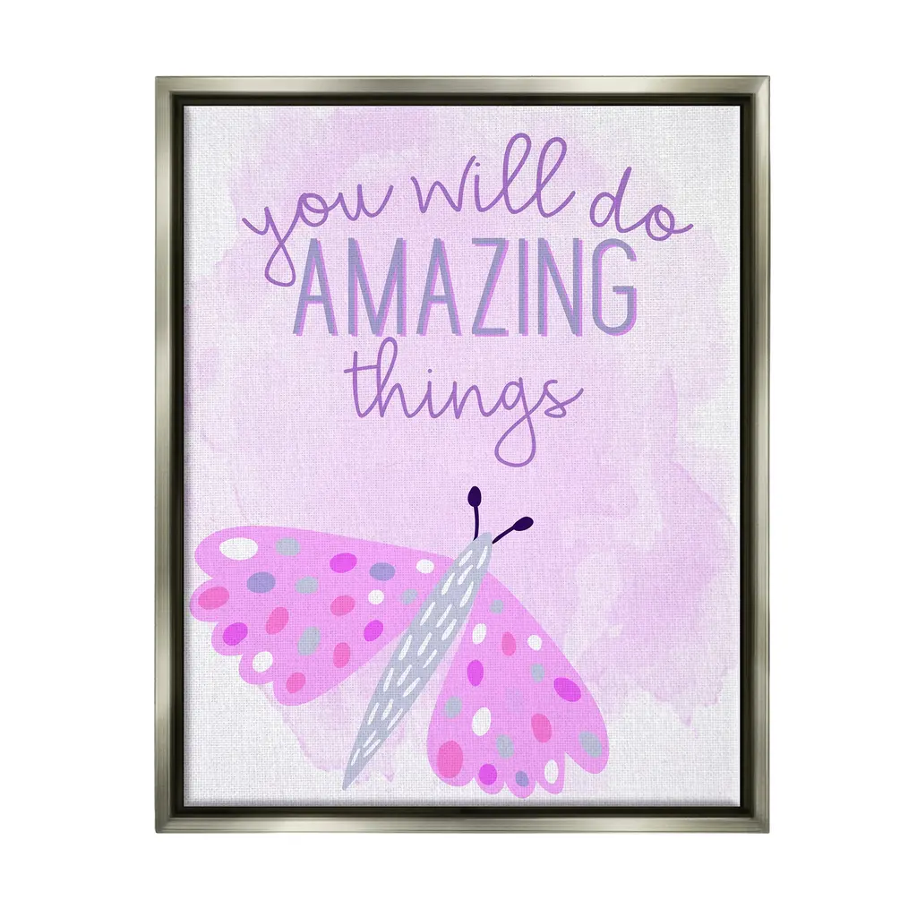 Elevate your home or office to the next level with Stupell Framed Floating Canvas Wall Art. Our premium hand-stretched canvas is mounted securely into a sturdy lightweight frame. The museum-style gap between the wrapped canvas and the box frame gives the illusion of floating artwork. Stupell Wall Art is made in the USA.Features: Dimensions: 17 x 1.7 x 21 Frame, 16 x 1.5 x 20 Canvas ArtFloating Frame Sizes Include Standard: 17 x 1.7 x 21 Oversized: 25 x 1.7 x 31Wall Art is Ready to Hang - No Installation or Hardware Needed. For Easy Set Up Lean or Layer Artwork on Shelf or Against Wall.Our elevated 1.7" Thick Floating Frame is the perfect complement to our canvas style Wall Art. We use only the highest quality inks in house with industry leading printing solutions. Canvas is hand stretched over a durable wood foundation and then mounted securly into a Modern Box Frame. Made in the USA.Artwork Relates To: Purple, Insect, You Will Do Amazing ThingsDesign by Kim Allen