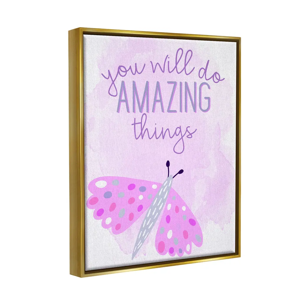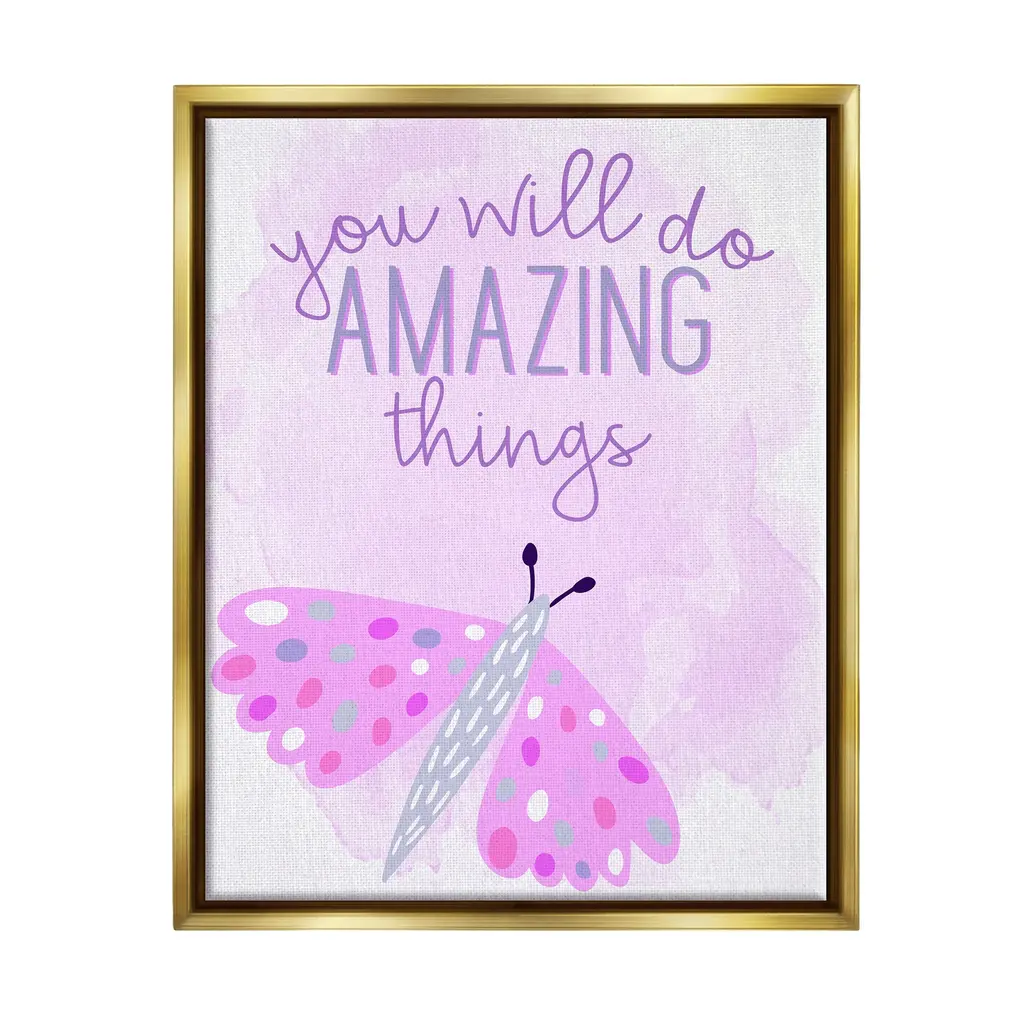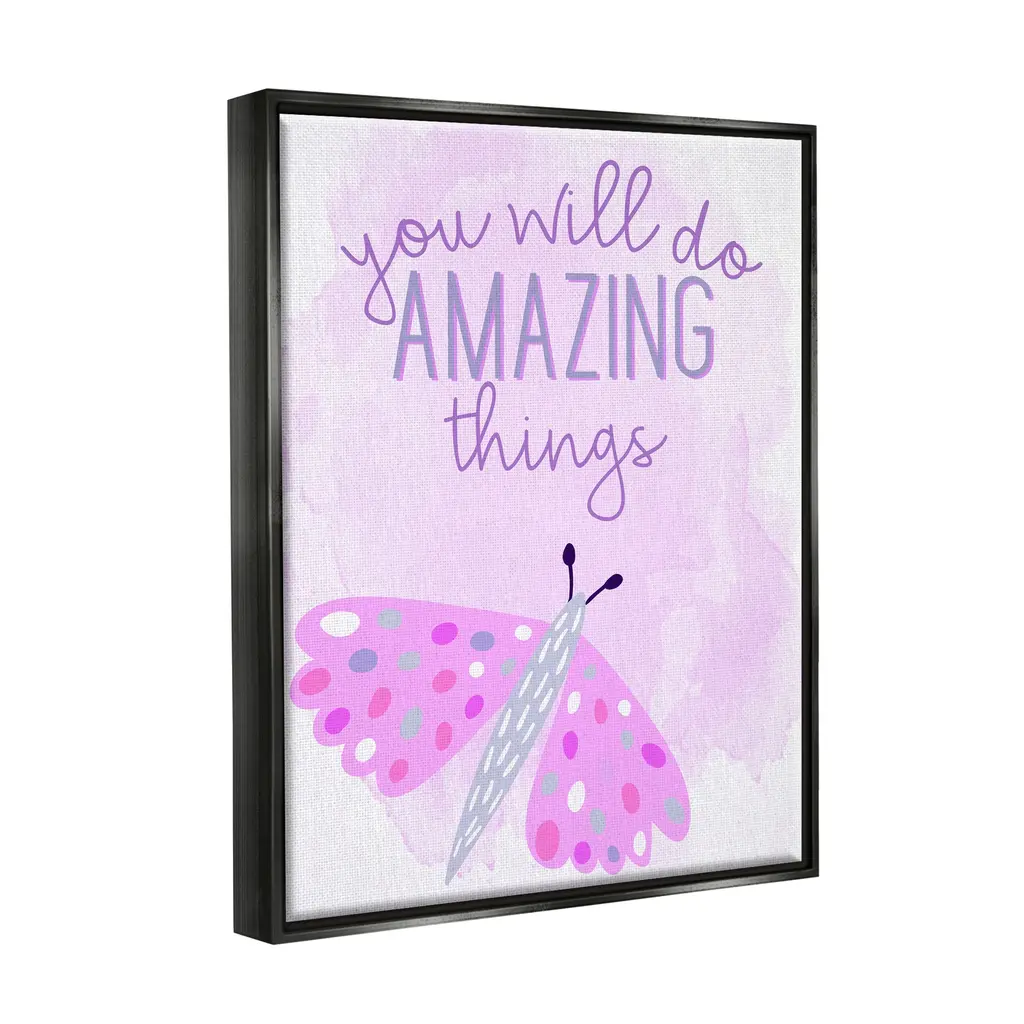 Elevate your home or office to the next level with Stupell Framed Floating Canvas Wall Art. Our premium hand-stretched canvas is mounted securely into a sturdy lightweight frame. The museum-style gap between the wrapped canvas and the box frame gives the illusion of floating artwork. Stupell Wall Art is made in the USA.Features: Dimensions: 17 x 1.7 x 21 Frame, 16 x 1.5 x 20 Canvas ArtFloating Frame Sizes Include Standard: 17 x 1.7 x 21 Oversized: 25 x 1.7 x 31Wall Art is Ready to Hang - No Installation or Hardware Needed. For Easy Set Up Lean or Layer Artwork on Shelf or Against Wall.Our elevated 1.7" Thick Floating Frame is the perfect complement to our canvas style Wall Art. We use only the highest quality inks in house with industry leading printing solutions. Canvas is hand stretched over a durable wood foundation and then mounted securly into a Modern Box Frame. Made in the USA.Artwork Relates To: Purple, Insect, You Will Do Amazing ThingsDesign by Kim Allen